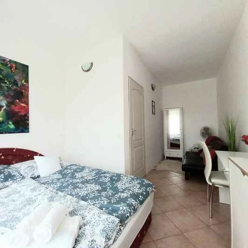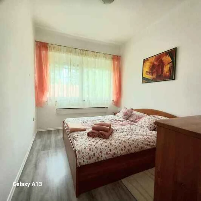 Ubicación: Balatonmáriafürdő. El apartamento vacacional moderno (año de construcción 1980, en el año 2017 renovado) se encuentra en una zona residencial, en el centro de la localidad y en una soleada ubicación. 150 m del paseo marítimo y 300 m de la playa central El acceso se realiza por una calle secundaria o directamente por la calle principal (asfaltado). Aparcamiento en la propiedad (para 3 coches). Compras 200 m, restaurante 150 m, centro de la localidad 200 m. Balatonmáriafürdő: farmacia 1000 m, discoteca 200 m y estación de tren 300 m.