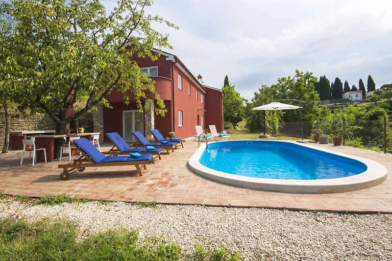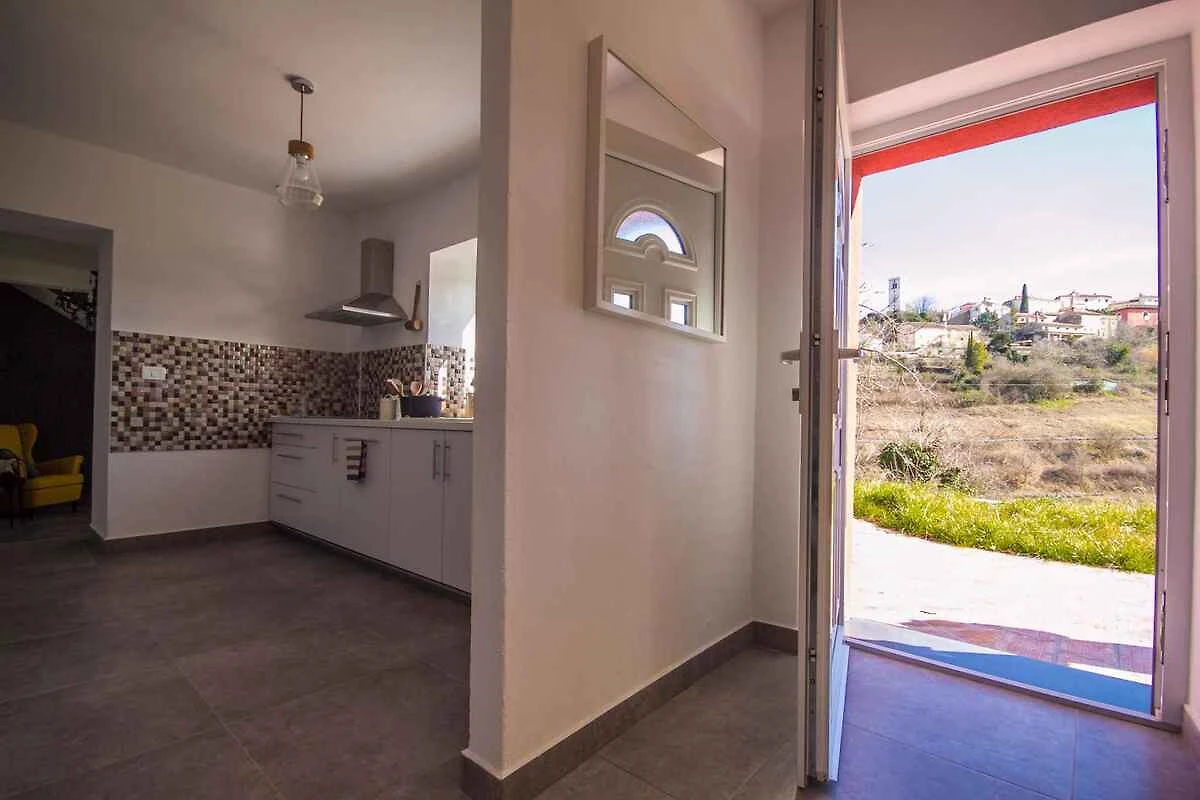 Ubicación: Oprtalj. La casa vacacional moderna (en el año 2019 renovado) se encuentra separada, en la periferia de la localidad y en una tranquila, una soleada y aislada ubicación. Vista de la propiedad sobre el panorama. El acceso se realiza por una calle secundaria (rocalla o cascajo). Aparcamiento en la calle frente a la casa. Compras 400 m, restaurante 400 m, centro de la localidad 400 m. médico, farmacia, banco respectivamente 15 km en Buje. aeropuerto en Pula 75 km. Muy cerca se encuentran senderos para bicicletas (Parenzana) y rutas de senderismo.