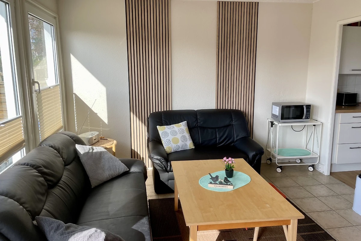 La casa de vacaciones ofrece una amplia sala de estar, una cocina independiente, un baño moderno y dos dormitorios confortables. La sala de estar está equipada con calefacción eléctrica para garantizar un ambiente acogedor incluso en los días más frescos. La terraza se encuentra en el lado soleado sur e invita a relajarse. Justo al lado de la casa de vacaciones hay una plaza de aparcamiento para coches. Tenga en cuenta que desde 2024 se cobra un impuesto turístico en la región. La cocina bien equipada dispone de un frigorífico con congelador integrado, un hervidor de agua, una cafetera, una tostadora, un microondas con función grill y una placa vitrocerámica con dos fuegos. La zona de estar está amueblada con una mesa de comedor, dos sofás de cuero y taburetes de cuero a juego, ideal para noches acogedoras.
