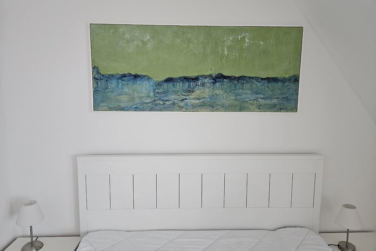En la planta superior independiente se encuentran una sala de estar/dormitorio (con cocina americana, TV y sofá cama doble), un dormitorio doble y otro baño con ducha. Las habitaciones están amuebladas de forma individual y acogedora. Hay conexión a Internet a través de Wi-Fi. Uno de los tres televisores disponibles es un SMART-TV (=televisor con acceso a Internet). El SMART-TV está en el salón/planta baja.