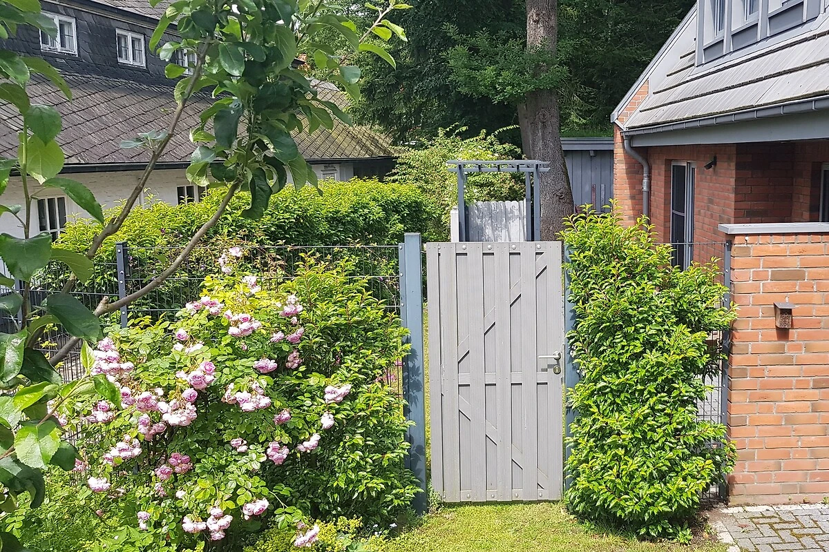 Le ofrecemos una casa adosada decorada con esmero para hasta 6 personas. La moderna casa de arquitecto se terminó en 2016 y desde la primavera de 2020 se alquila la parte trasera como casa de vacaciones. La casa está completamente alicatada. La planta baja y los 2 baños con ducha se calientan mediante calefacción por suelo radiante. Las habitaciones de la planta superior están equipadas con radiadores. La casa ofrece en la planta baja una cocina-comedor con sofá cama (140x200cm), SMART-TV así como cocina con lavavajillas, cocina con horno y microondas, un dormitorio doble con TV, baño con ducha - sin barreras - con lavadora y secador de pelo. También hay un cuarto de servicio.