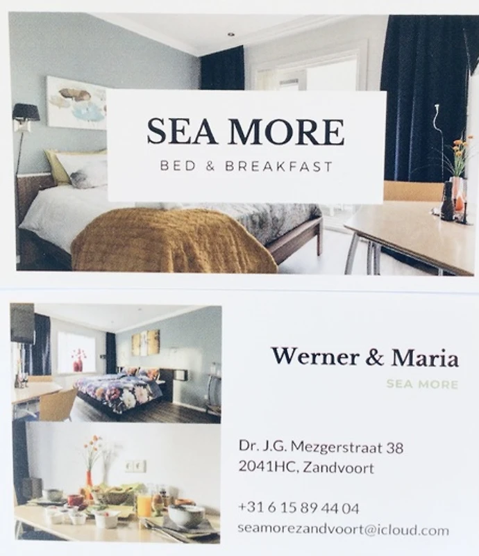 Bienvenido a SEA MORE! Un lugar encantador para una o más pernoctaciones junto al mar. Werner de María le da la bienvenida personalmente. SEA MORE se encuentra justo enfrente de la amplia playa de arena de Zandvoort. Cerca de la estación de tren, el centro, el Parque del Circuito de Zandvoort y las dunas. En tren estás a 10 minutos en Haarlem o a 30 minutos en Amsterdam. En varios pabellones de la playa, algunos de los cuales están geo-pendientes todo el año, se puede disfrutar de un aperitivo y una bebida. También hay muchos restaurantes agradables en nuestro hermoso pueblo. Hay varias actividades como caminar por la playa, andar en bicicleta por el bulevar y por las dunas. Para los amantes del kite y el windsurf, es mucho para disfrutar. En el Parque del Circuito de Zandvoort el Gran Premio de F1 regresará. A lo largo del año hay varios eventos para los entusiastas de los deportes de motor. En las inmediaciones hay varios campos de golf, como The Dunes, donde también jugamos regularmente. Le deseamos una cálida bienvenida.