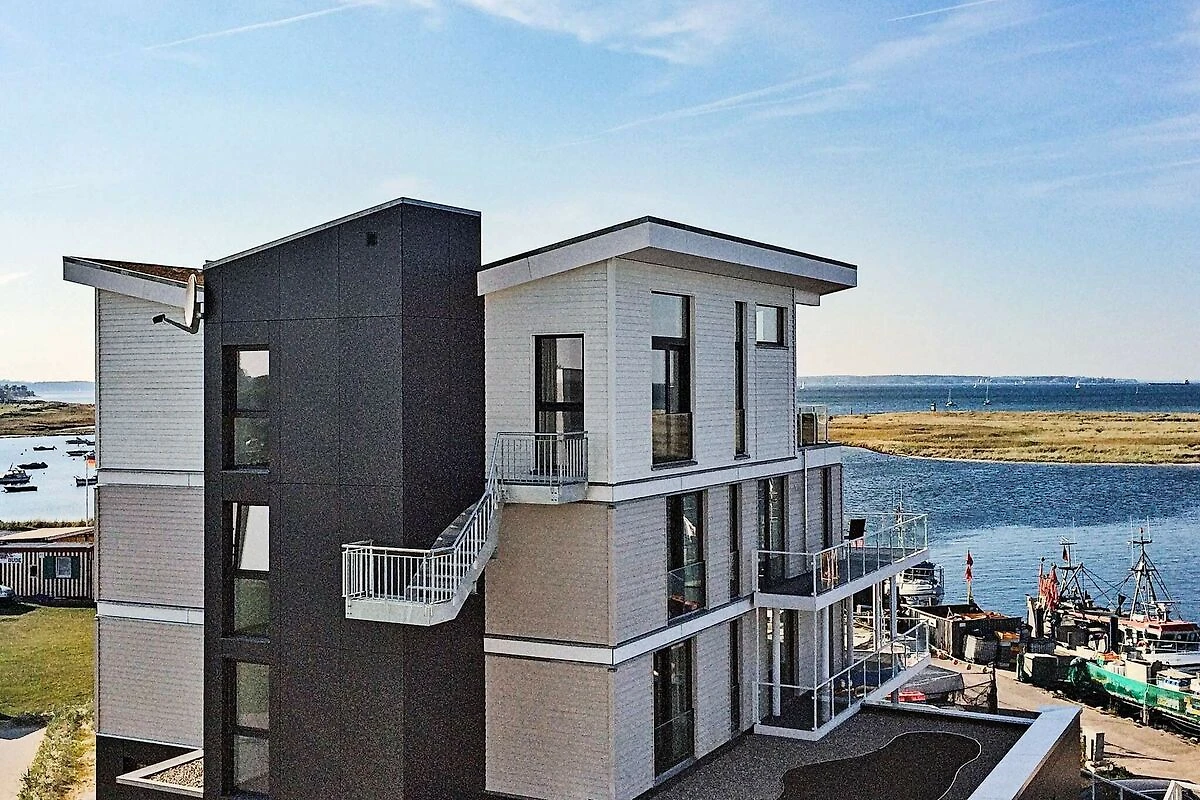La comodidad de una vida moderna le espera en la primera planta, con un balcón cubierto y envolvente. Desde aquí podrá disfrutar de una vista panorámica despejada de la espectacular puesta de sol, el faro de Bülker y los barcos que navegan desde el fiordo de Kiel hacia el Canal de Kiel. ¡Por cierto, el canal es la vía fluvial artificial más transitada del mundo!