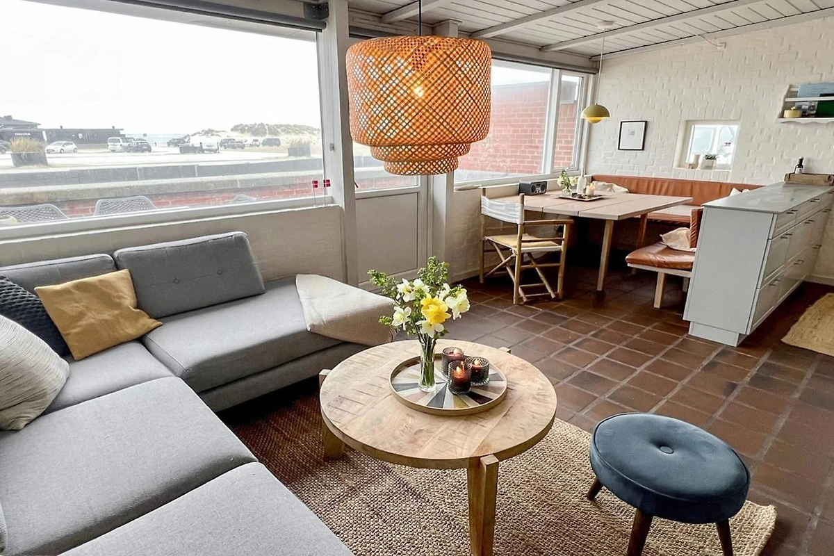 Casa adosada con sauna y vistas al agua y la playa en Henne en la fila exterior de dunas. La casa ha sido completamente renovada en 2021 con una cocina nueva y moderna con lavavajillas, baño nuevo, camas y muebles nuevos en todas partes, todo con materiales y estilo completamente deliciosos. Se ha instalado una bomba de calor aire / aire. Hay una cocina, comedor y sala de estar en uno, baño con calefacción por suelo radiante, 2 dormitorios y una sauna separada. Un dormitorio está equipado con una cama doble, mientras que el otro está equipado con una cama individual y una litera para 2 personas. La casa es i.a. equipado con estufa de leña, DVD y TV. Desde el salón hay ventanas panorámicas y acceso a la terraza orientada al oeste de la casa con vistas al agua y la playa de Henne. Hay muy buenas condiciones de estacionamiento.