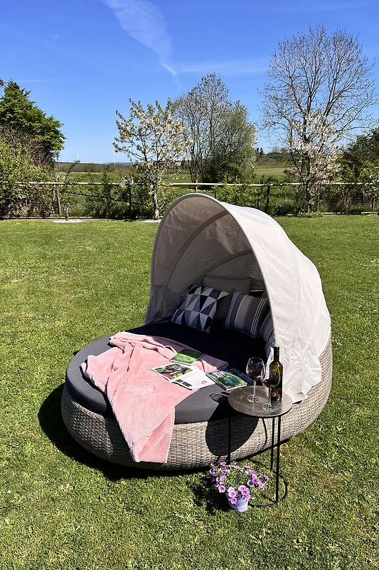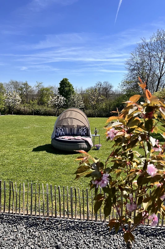 ¡Quien busca tranquilidad y diversión con su perro o también con la familia está en el lugar correcto! El apartamento de vacaciones es nuevo y está decorado con gusto, con todo lo que se necesita, desde vajilla hasta electrodomésticos de cocina como cafetera, tostadora, etc. ¡Todo muy acogedor y muy limpio! El área exterior está bien cuidada y el jardín cercado es un atractivo para perros y niños. Hay varias zonas de asiento y también juegos para los niños. Se puede aparcar directamente en la casa... así que... todo óptimo para unas vacaciones relajadas. Quiero mencionar que los anfitriones son sumamente amables y realmente han pensado en todo. ¡Muchas gracias a la familia Heck!