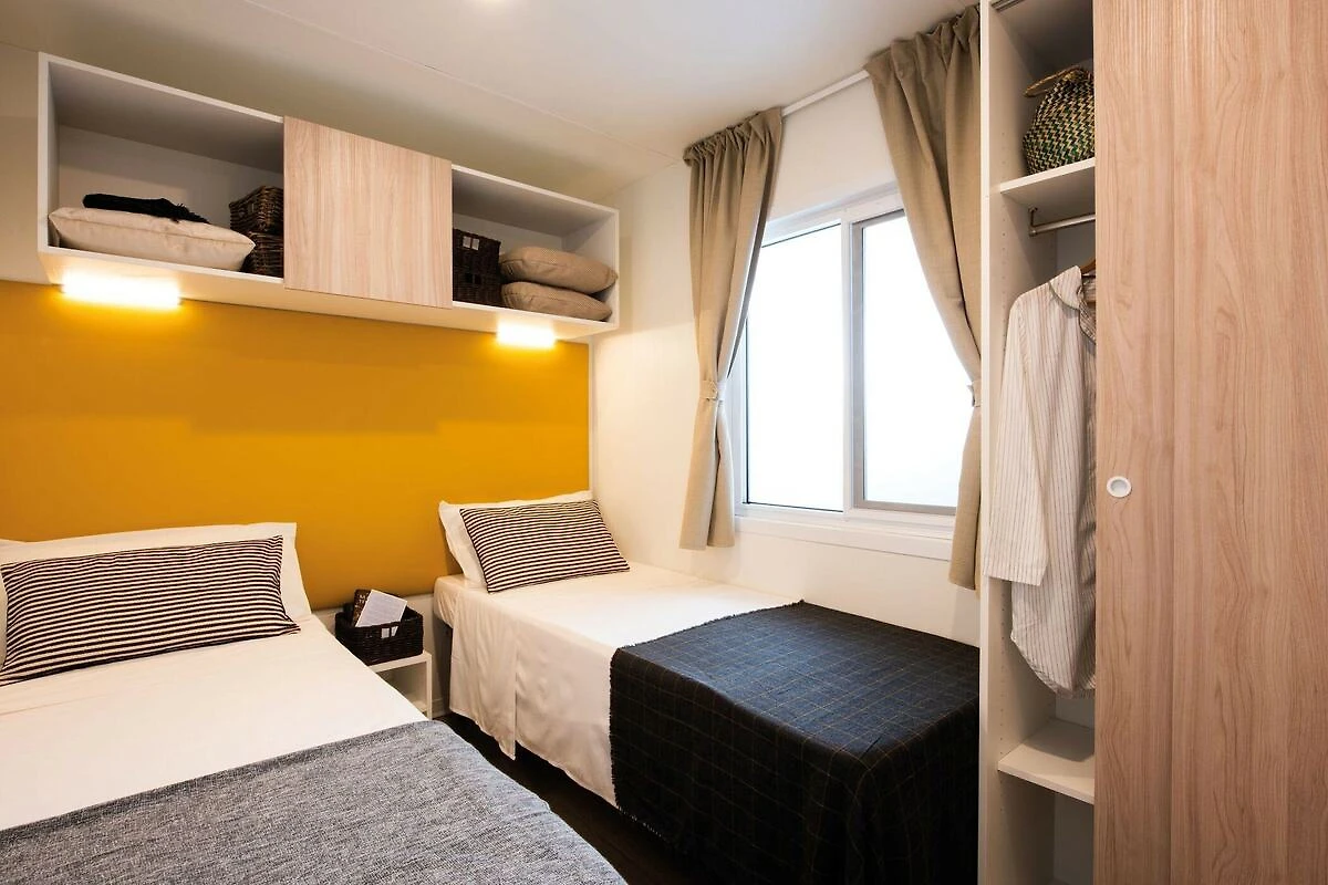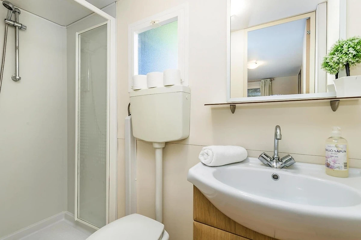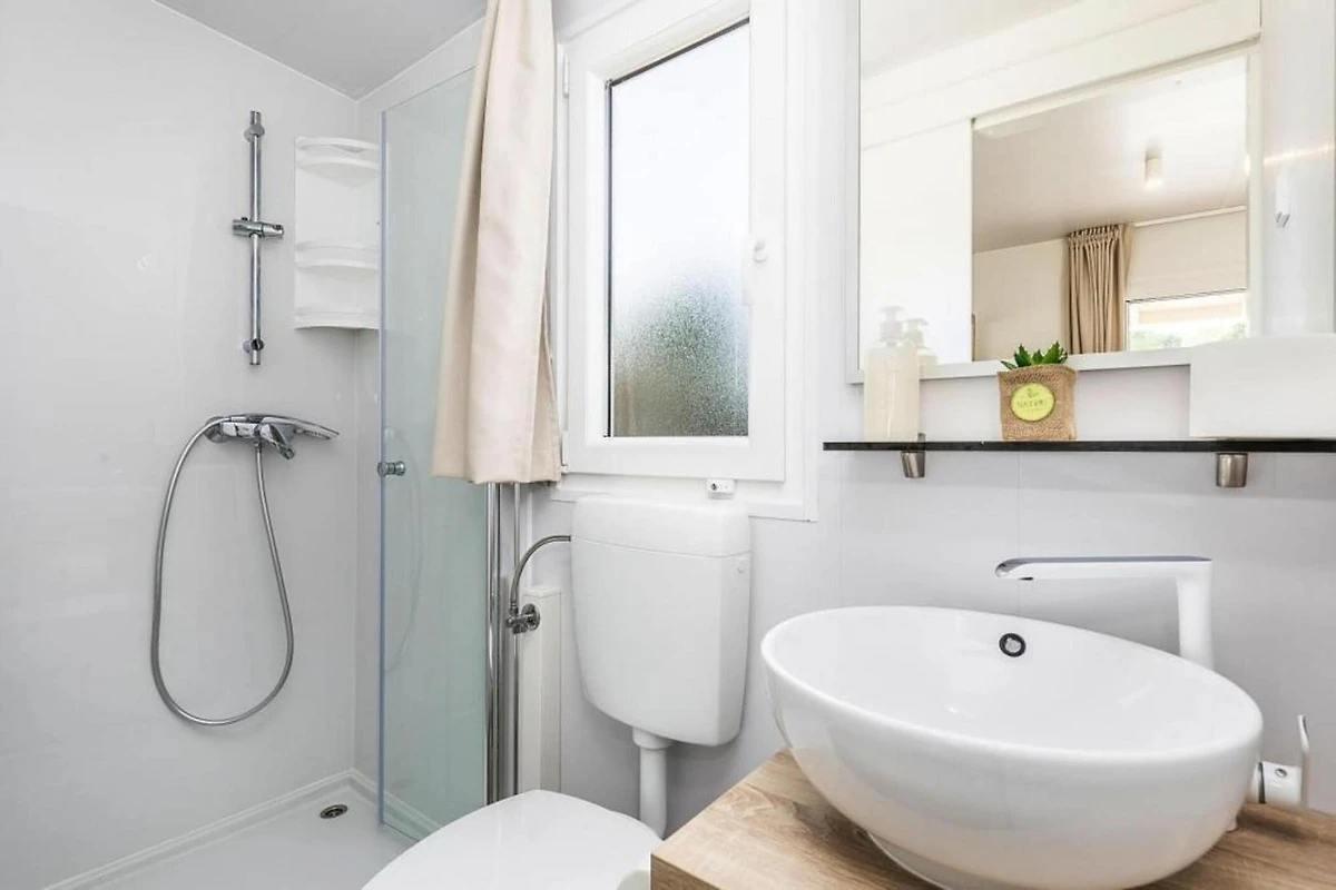 Amplio complejo de vacaciones directamente en la hermosa playa de guijarros de suave pendiente con casas móviles modernas y amuebladas de alta calidad. Dependiendo de la ubicación de la casa móvil, hay solo de 20 a 200 metros hasta la playa, donde hay dos tumbonas disponibles para usted en cada casa móvil. 1 plaza de aparcamiento por mobil-home incluida, 2ª plaza de aparcamiento EUR 9,00 por día. El camping está rodeado por un bosque de 57 hectáreas con robles dálmatas y olivos. Además de sol y mar, aquí podrá disfrutar de unas vacaciones variadas con un variado programa de animación y numerosas ofertas activas. Hay seis piscinas de agua dulce solo en el sitio, algunas con jacuzzi, y a lo largo de la playa encontrará una variedad de deportes acuáticos y varios chiringuitos. Para un bronceado perfecto, la instalación también ofrece una playa nudista.Como la segunda ciudad más grande de la isla de Pag, el antiguo pueblo de pescadores de Novalja ahora se ha convertido en un popular destino turístico. El tramo de costa entre Novalja y Zrce ahora se conoce como la Ibiza de Croacia. Novalja en sí hace más que honor a este nombre con todos sus acogedores bares y modernas discotecas. A pocos kilómetros de distancia, la playa de fiesta más popular te espera por la noche: en Zrce puedes divertirte junto al mar hasta el amanecer. Aspectos destacados incluidos: costos de energía basados en el uso, ropa de cama, toallas, limpieza final, WiFi. Actividades cercanas: Hay un total de 6 piscinas de agua dulce con una superficie total de aproximadamente 600 metros cuadrados para nadar y chapotear. Dos de las piscinas cuentan con jacuzzi con espacio para hasta 6 personas. También hay 1 piscina infantil (86 m²). Las excursiones desde Pag lo llevan tierra adentro a las fascinantes ciudades costeras de Zadar, Rijeka y Split, o tierra adentro a Zagreb. El magnífico mundo insular le invita a realizar excursiones en barco por su cuenta o con barcos de excursión. Estos desvíos a islas pequeñas y grandes también se pueden combinar muy bien con interesantes excursiones de buceo.