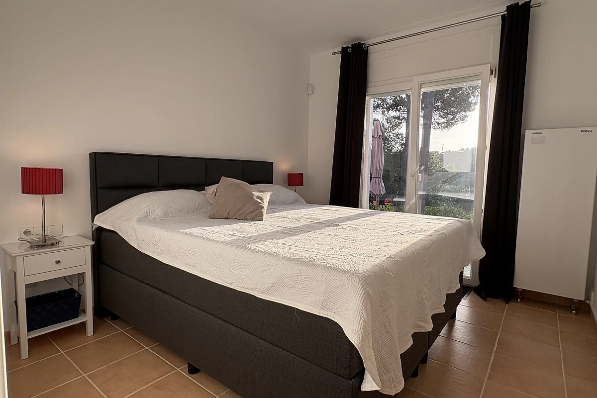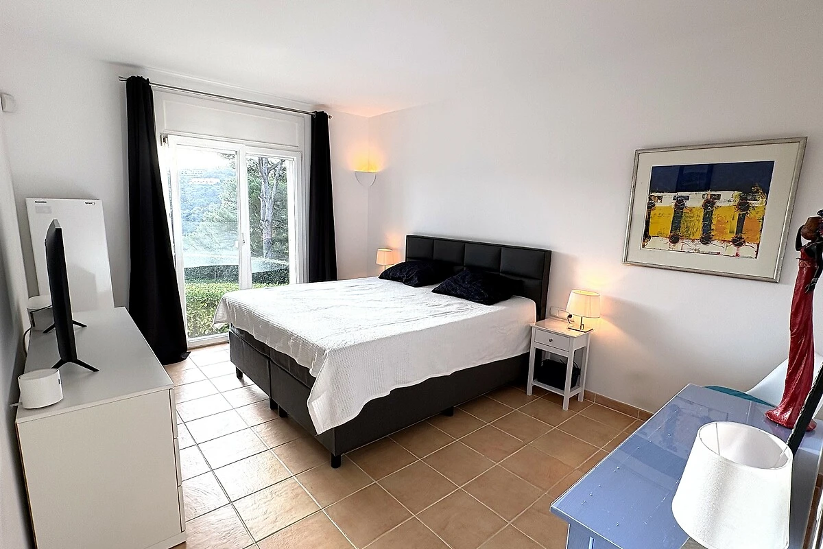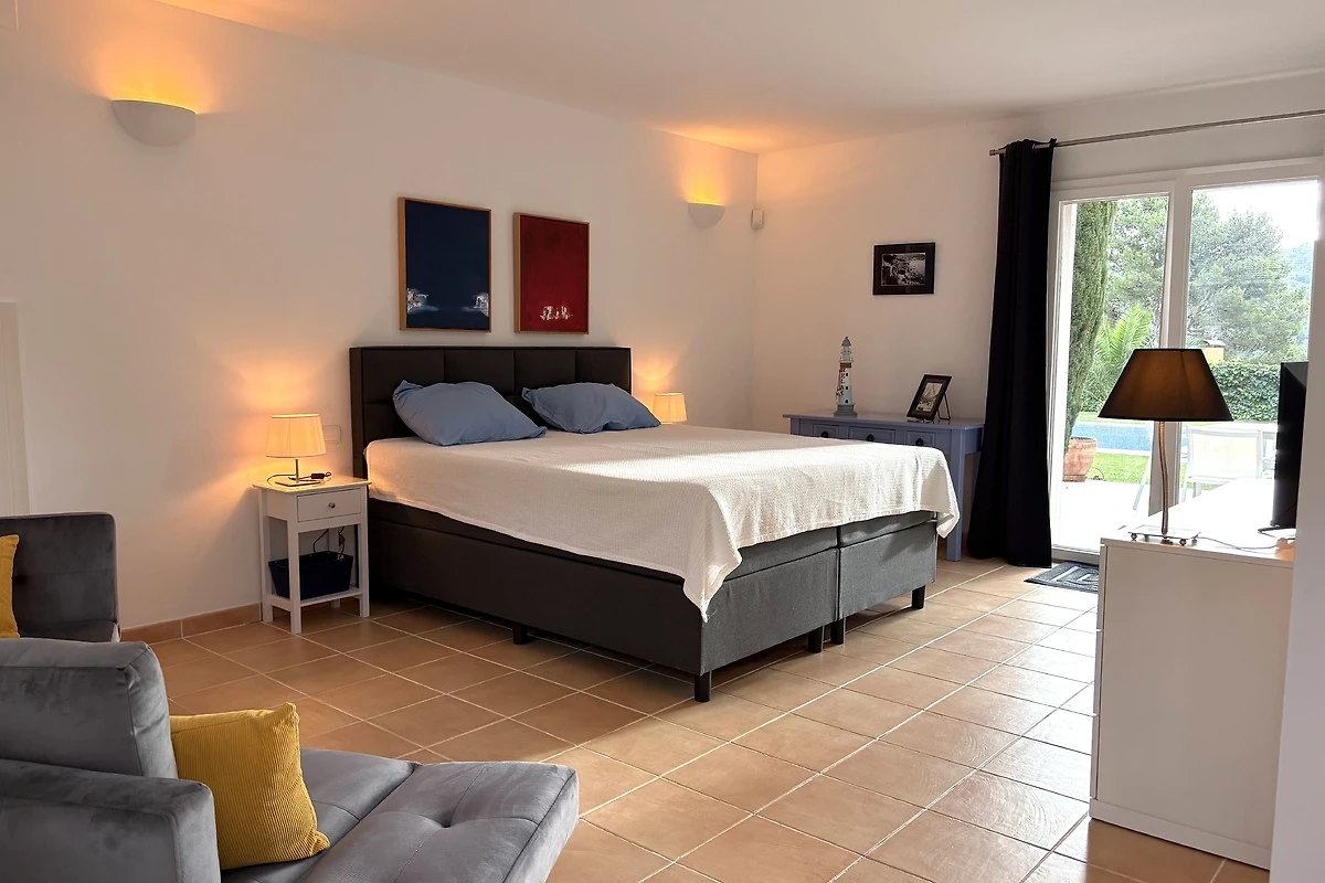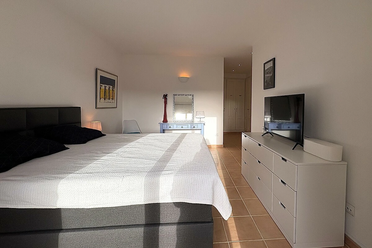 En la villa se encuentran el dormitorio principal con TV y baño privado con bañera, ducha y WC y dos dormitorios dobles con baño compartido con bañera, ducha y WC. El estudio tiene una cama doble, TV y un amplio baño con ducha y WC.