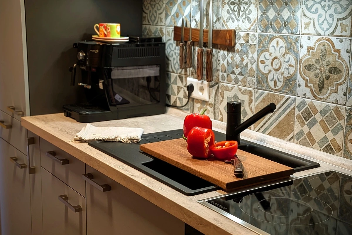 Acogedoramente amueblado, cocina completamente equipada con cocina eléctrica y horno, combinación de frigorífico y congelador, cafetera automática, tostadora, hervidor de agua, trona para niños.