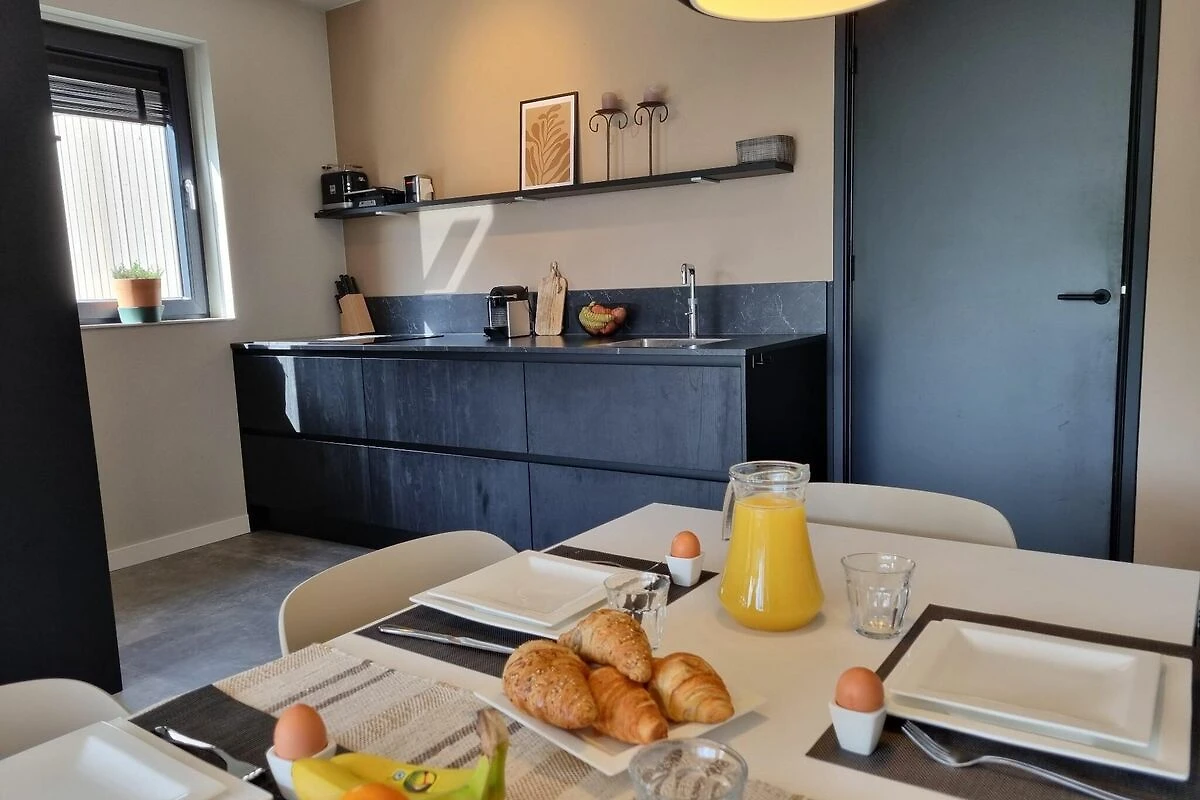 Planta baja: (vestíbulo, cocina abierta(mesa de comedor, mesa de comedor, cocina(inducción), tetera, tostadora, cafetera(cups), horno, lavavajillas, nevera con congelador ), salón-comedor(TV(smart TV), área sofá ), dormitorio con cuarto de baño(cama doble(boxspring), ducha(ducha de obra), lavabo), váter(lavabo, váter))