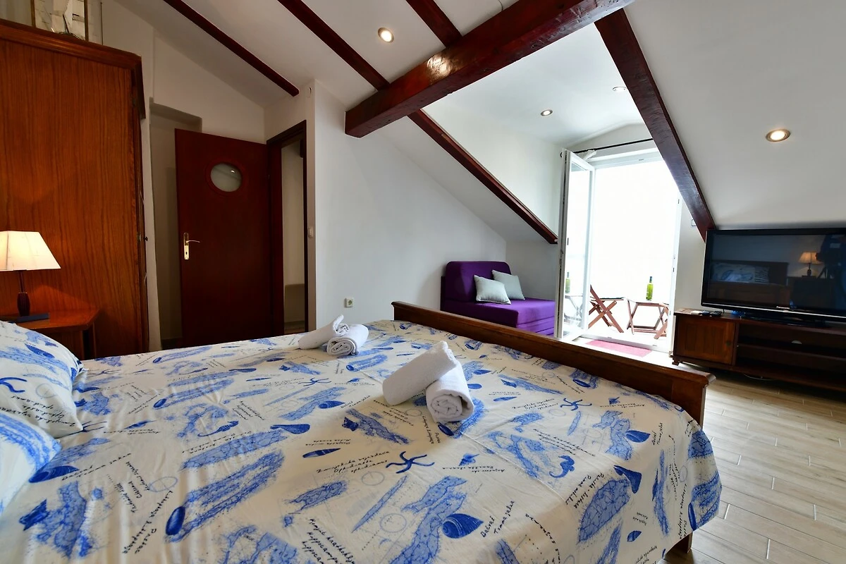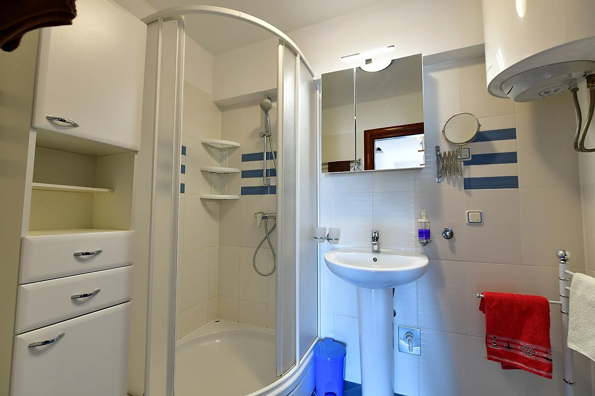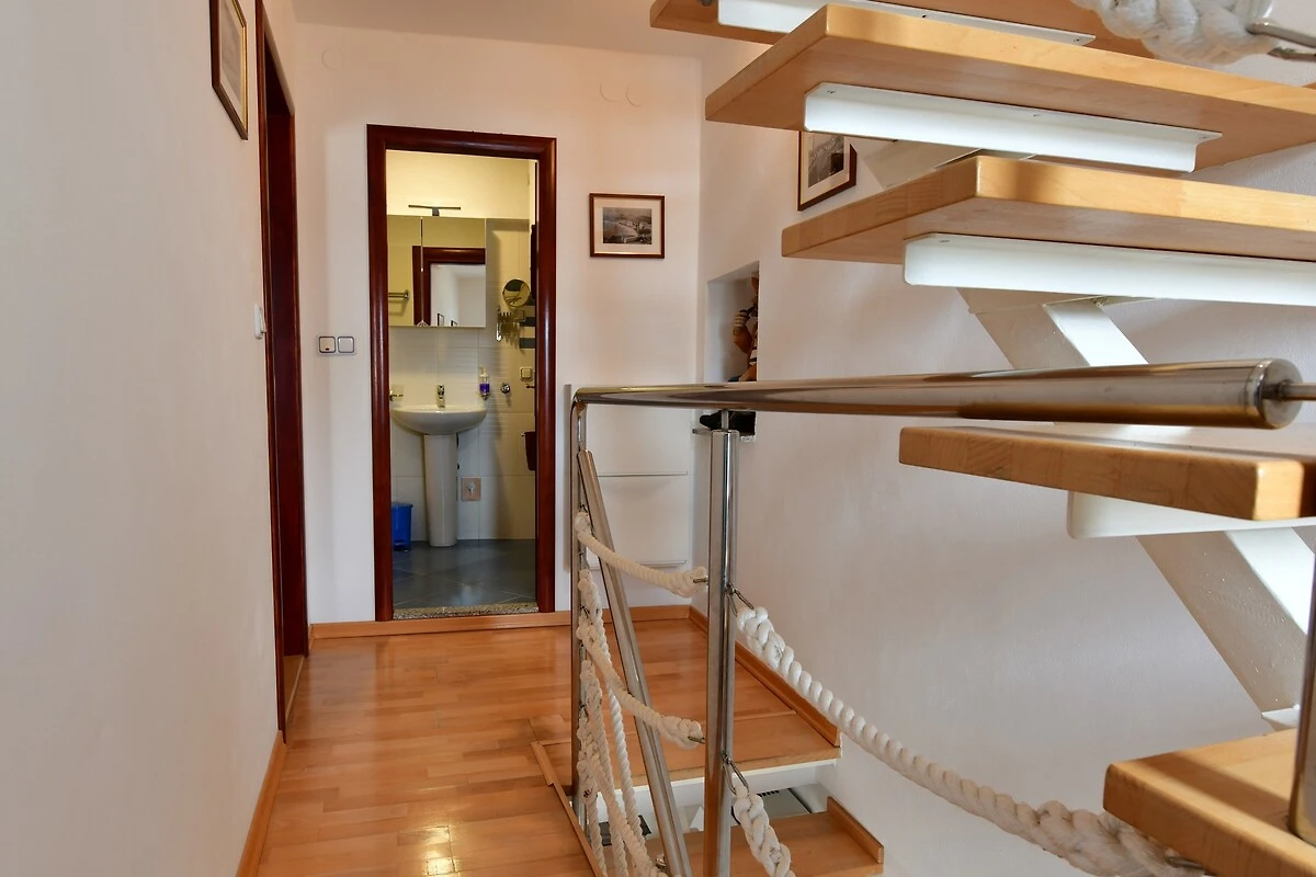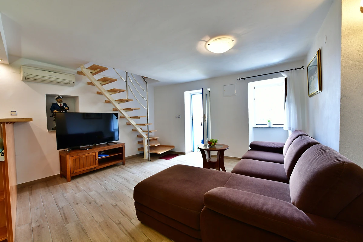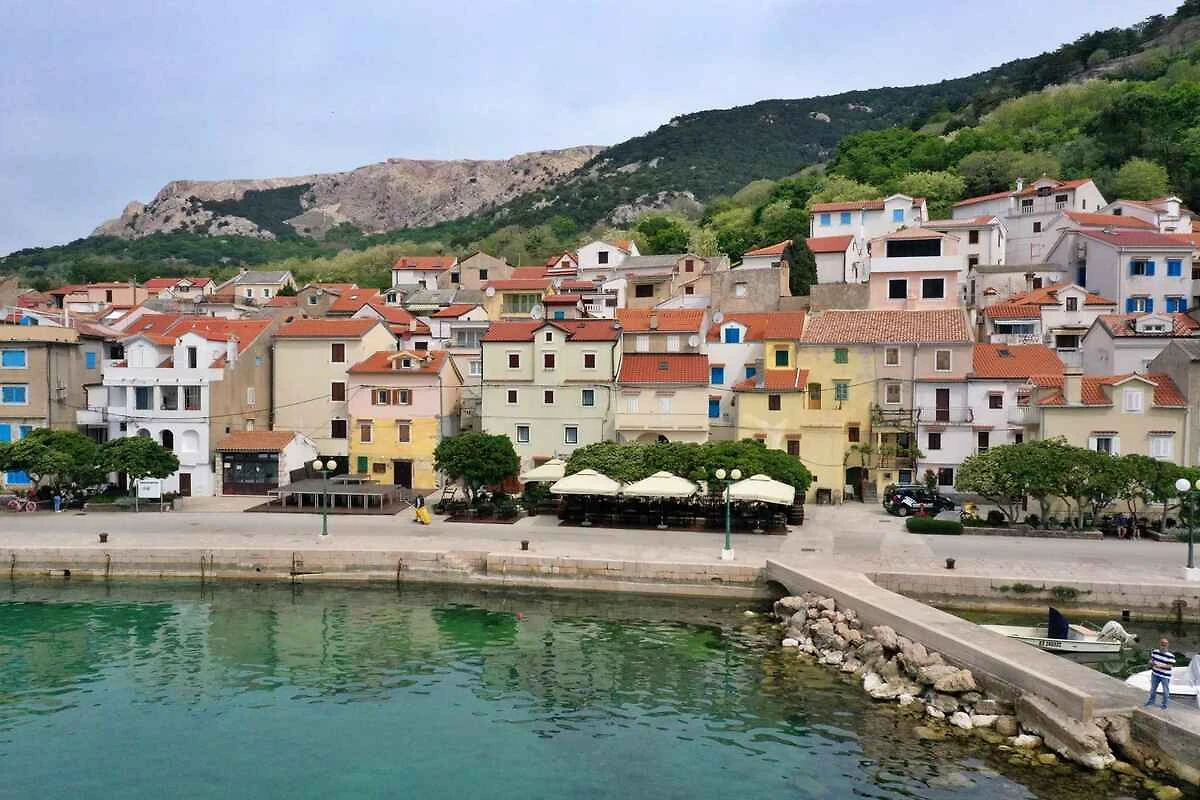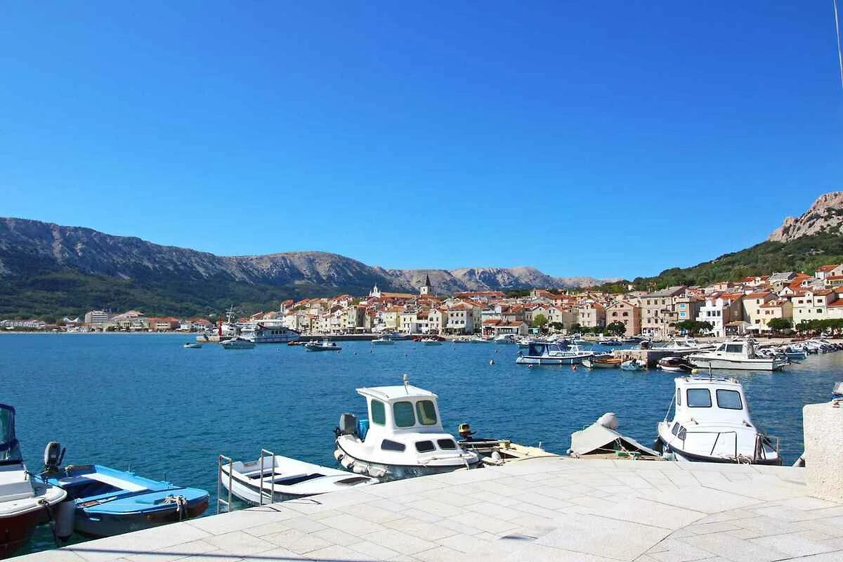 Ubicación: Baška. La casa vacacional en estilo típico de la región se encuentra en una casa adosada y en el centro de la localidad directamente en el casco antiguo. Vista de la propiedad sobre el mar. Aparcamiento en (para 1 coche) y en un aparcamiento en la población (distancia 300 m). Compras 100 m (en invierno 600 m), restaurante 10 m, centro de la localidad 500 m.