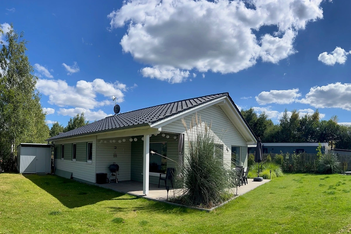 En nuestra moderna casa de vacaciones de una sola planta de 103 m³ hay 2 dormitorios grandes, un cuarto de baño espacioso, un aseo separado y una sauna.
