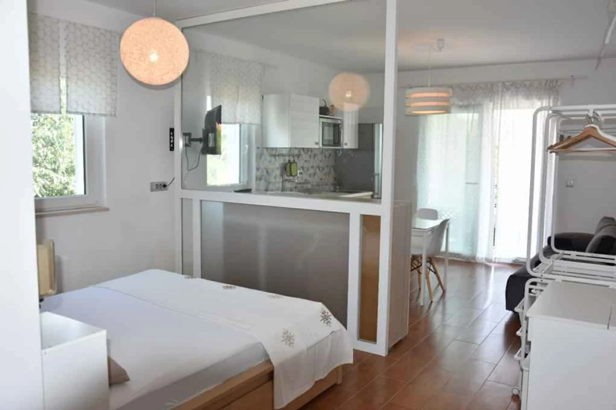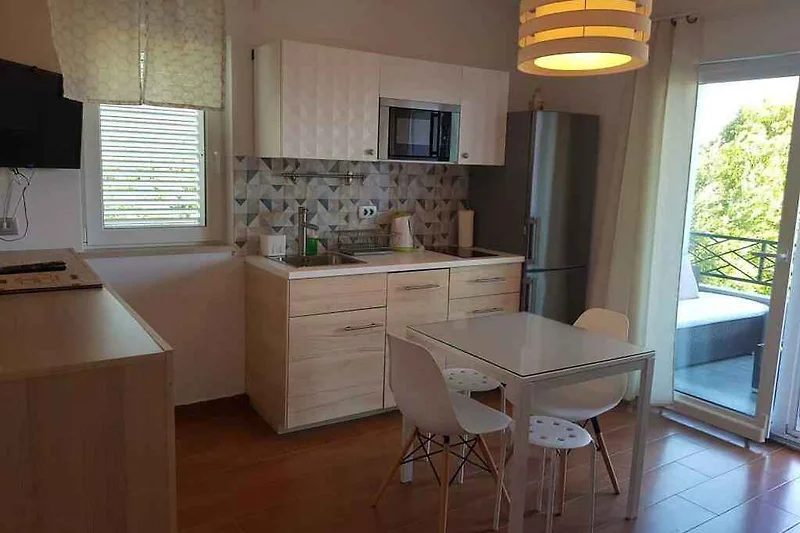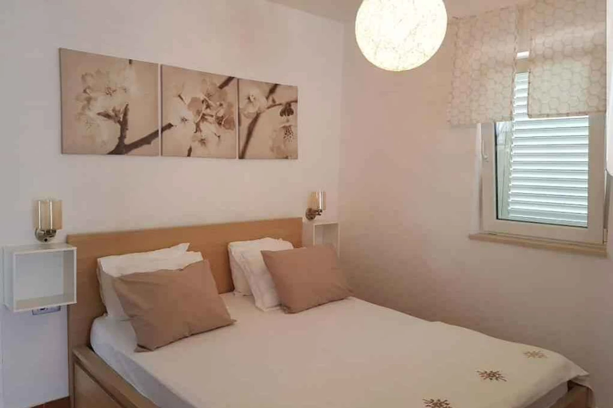 Ubicación: Orebić. El apartamento vacacional moderno se encuentra en la periferia de la localidad y en una tranquila y una soleada ubicación. Vista de la propiedad sobre el mar. El acceso se realiza por un camino (asfaltado). Aparcamiento en la propiedad. Compras 200 m, restaurante 200 m, centro de la localidad 1100 m. aeropuerto en Dubrovnik 125 km. Orebić: banco 1000 m, médico 1100 m y farmacia 700 m.