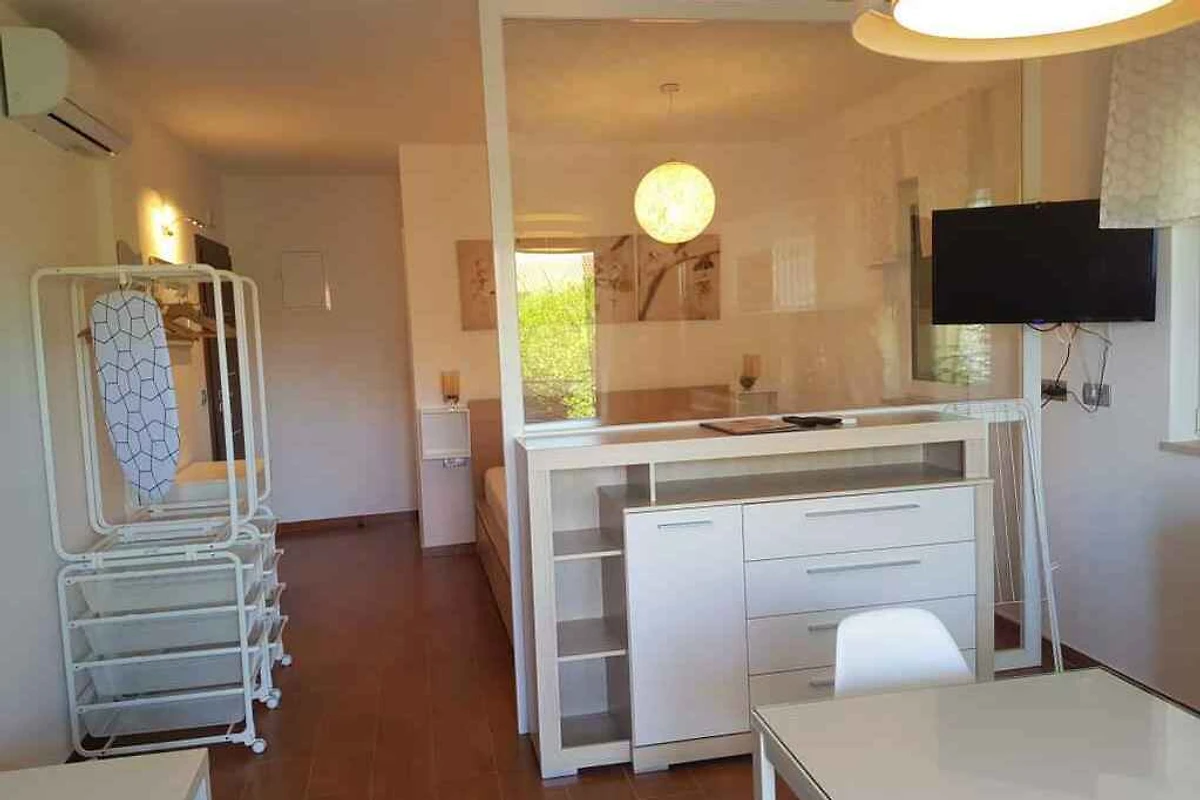 Su apartamento turístico: 1 planta, 1 habitación (de los cuales 1 dormitorio), 35 m², 2 personas. Aire acondicionado. Dormitorio. Salón/dormitorio con 1 cama doble, rincón para sentarse, zona comedor, televisión y acceso a la terraza. Cocina con zona comedor, televisión, cocina de inducción, lavavajillas, nevera (congelador), microonda, cafetera, hervidor eléctrico de agua y acceso a la terraza. Baño con ducha, inodoro, secador de pelo y ventana.