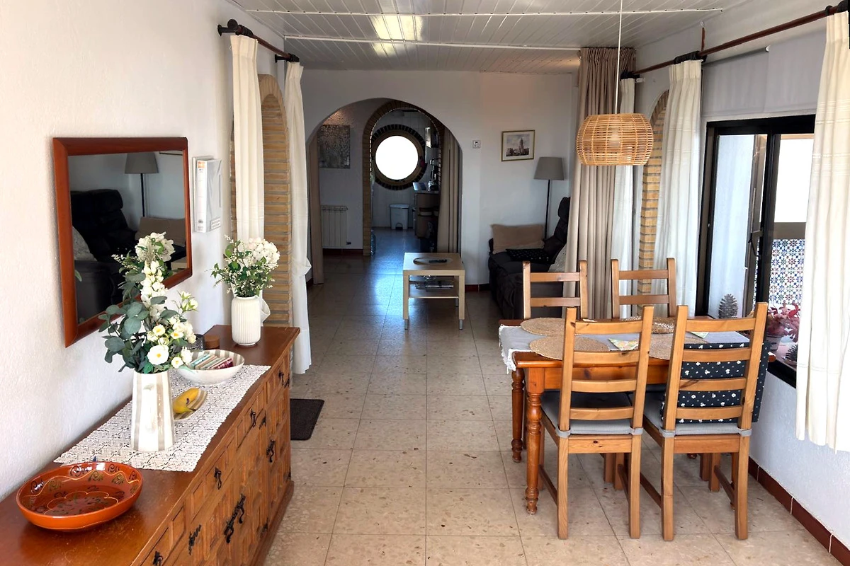 En 87 m2 de superficie habitable, hay dos dormitorios, un salón, una cocina y un cuarto de baño con ducha y aseo. Además, hay una terraza de 11 m2 en la azotea. El piso de vacaciones ofrece espacio para hasta cuatro personas. Se accede desde la acera de la calle, a través de una escalera en la zona de entrada de la casa.