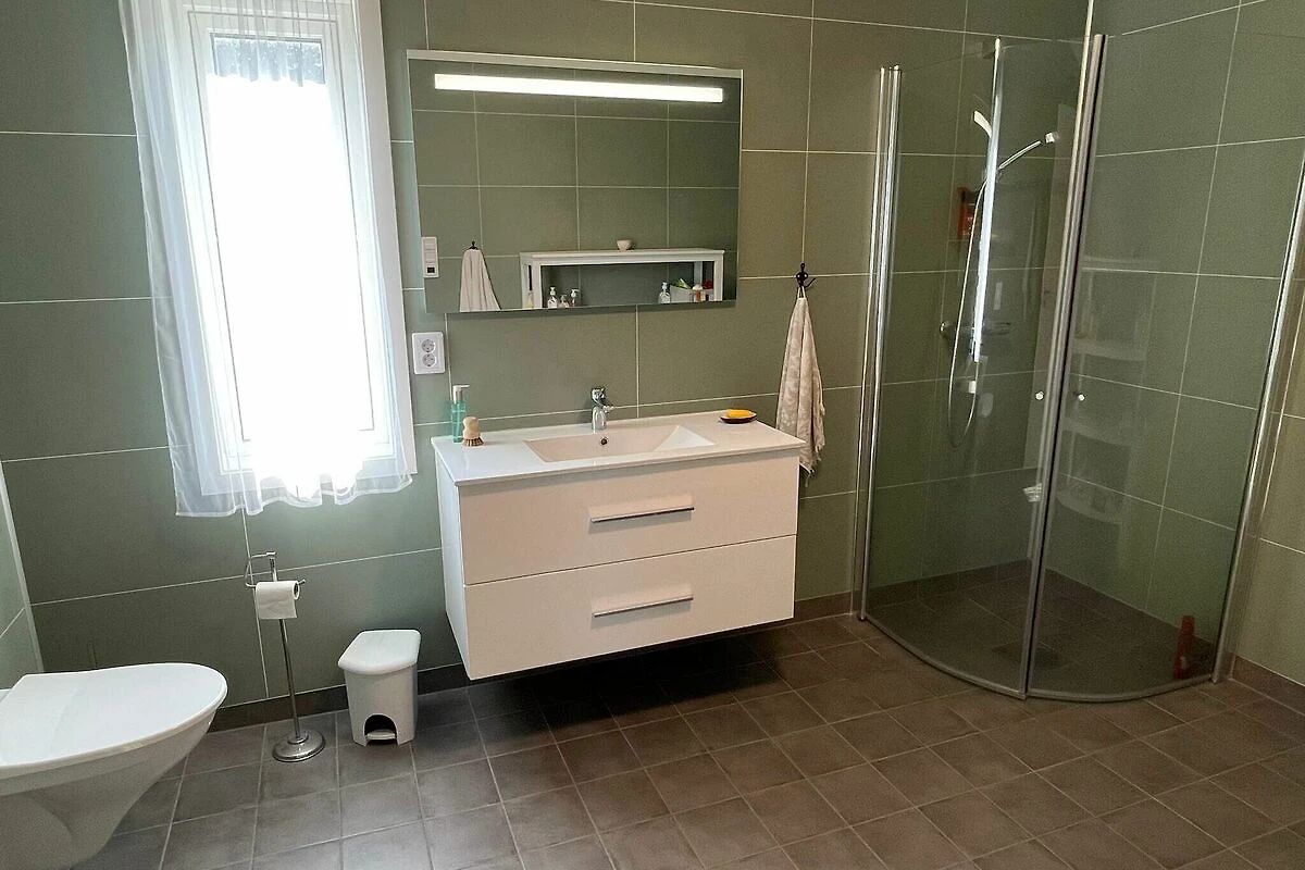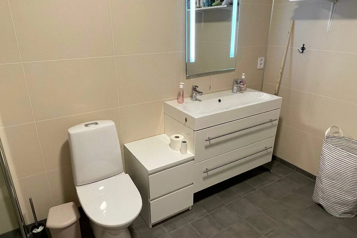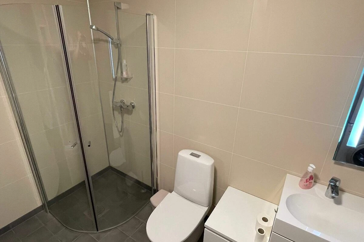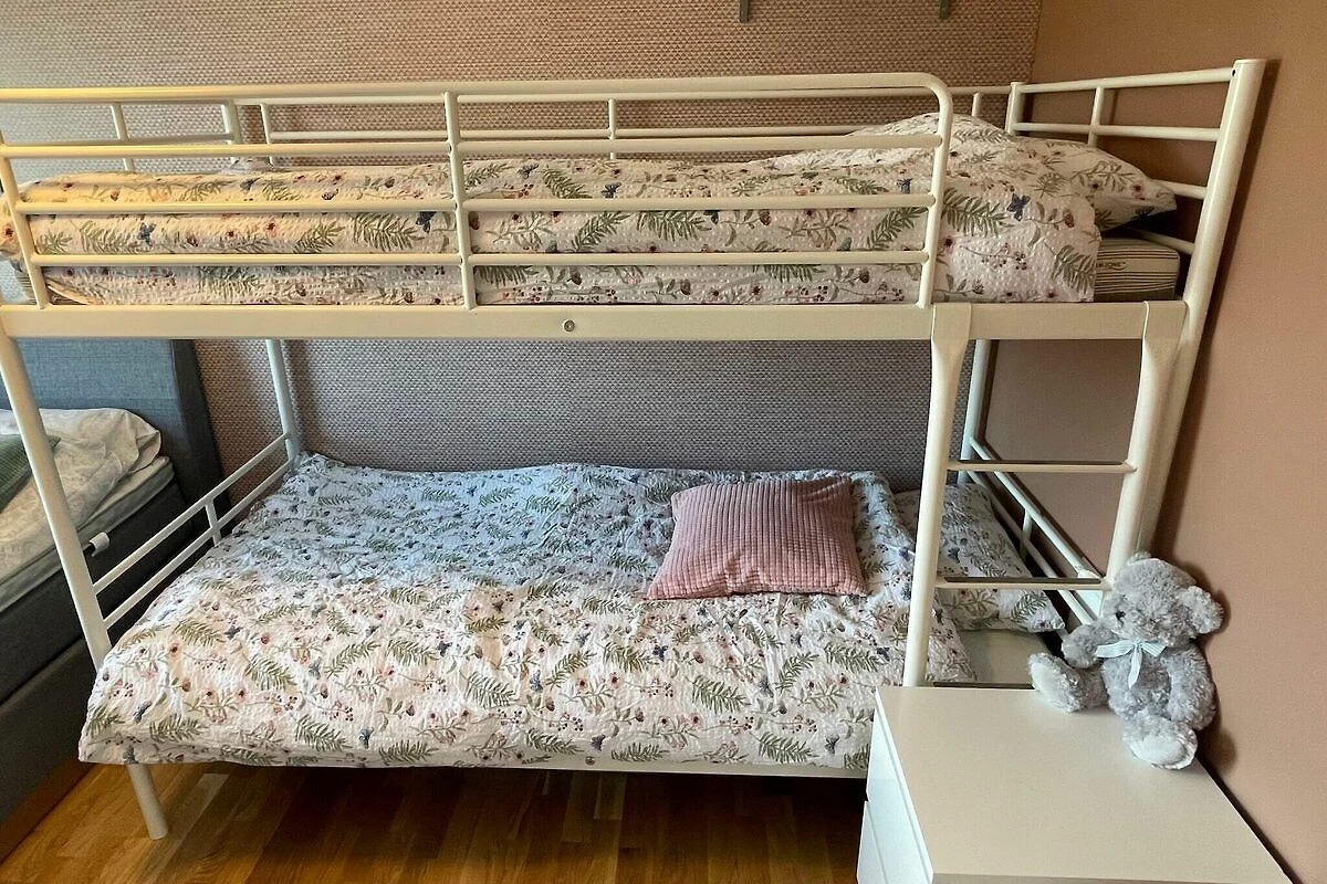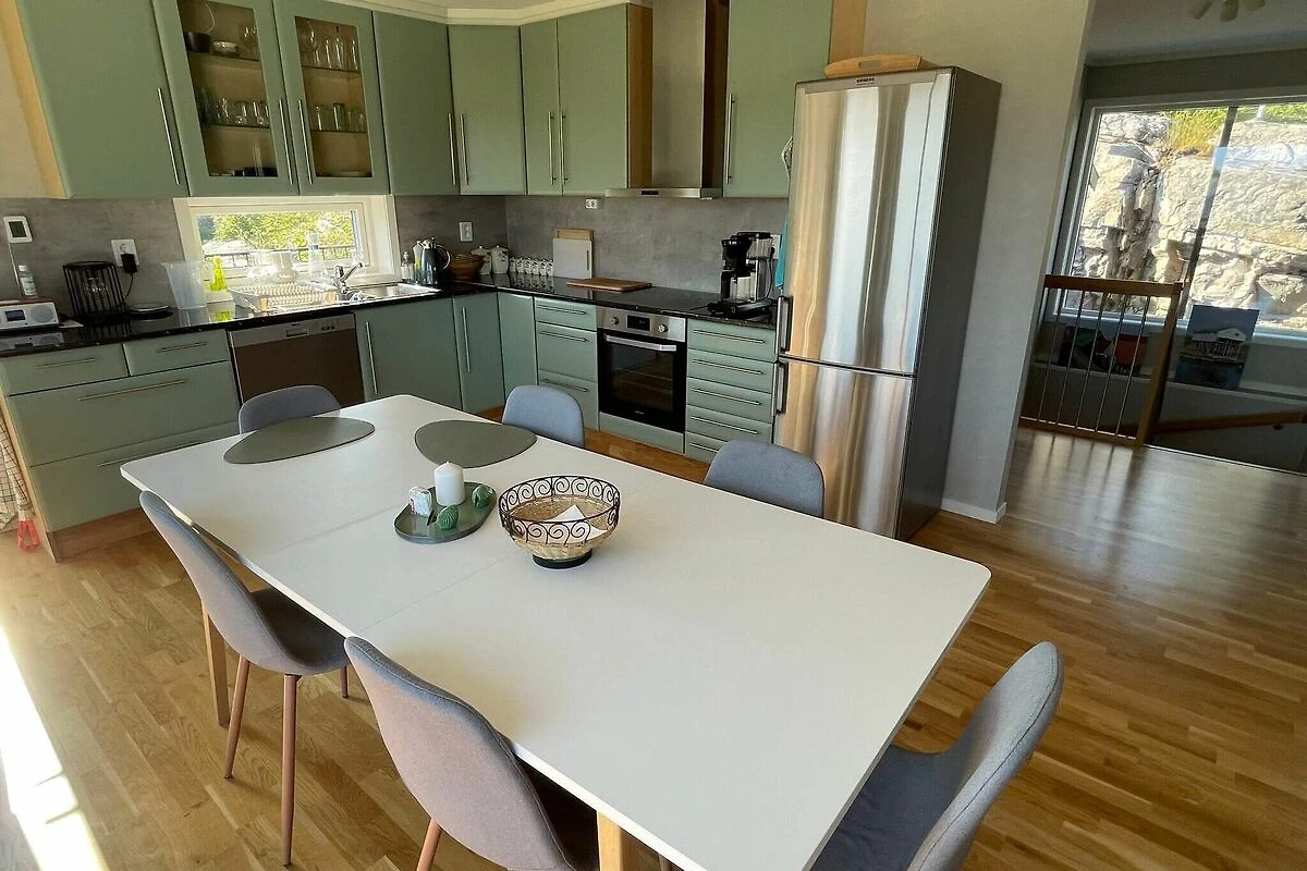 , cocina abierta(fogón(eléctrico), campana extractora, cafetera(filtro), máquina de waffles, microondas, lavavajillas, nevera, congelador(200-249L), secadora, lavadora), salón-dormitorio(45 m2)(TV(canales de televisión alemanes, canales de TV noruegos )), dormitorio(cama doble, 2x litera), dormitorio(cama individual), dormitorio(2x cama individual), dormitorio(cama doble), cuarto de baño(calefacción de suelo)(bañera o ducha, lavabo, váter), cuarto de baño(calefacción de suelo)(bañera o ducha, lavabo, váter), calefacción(radiador(es) eléctrico(s)), terraza(60 m2), muebles de jardín, barbacoa, aparcamiento