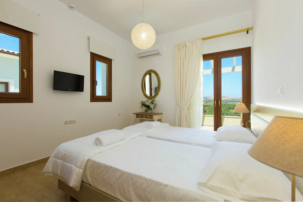 Ubicadas en la serena campiña cretense, en el pueblo de Achlades, Petro Kampos Villas ofrece un refugio lujoso y espacioso. Este exclusivo complejo de 3 villas privadas tiene capacidad para 25 huéspedes en 11 cómodas habitaciones, lo que lo convierte en el destino ideal para familias numerosas, familias que viajan juntas o grupos grandes de amigos. Cada villa está diseñada con una combinación de encanto tradicional y elegancia moderna para ofrecer una experiencia vacacional relajante y placentera.