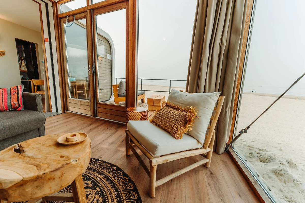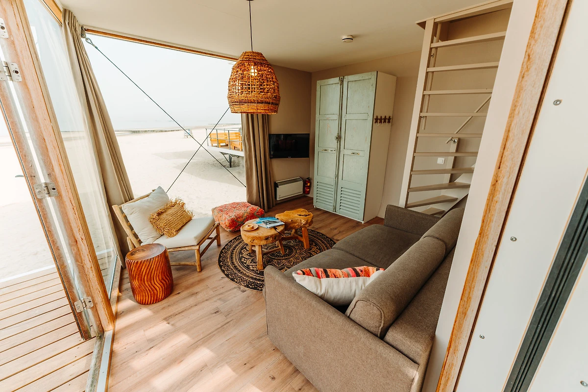het uitzicht op het strand en de zee, en de ligging van het huisje
