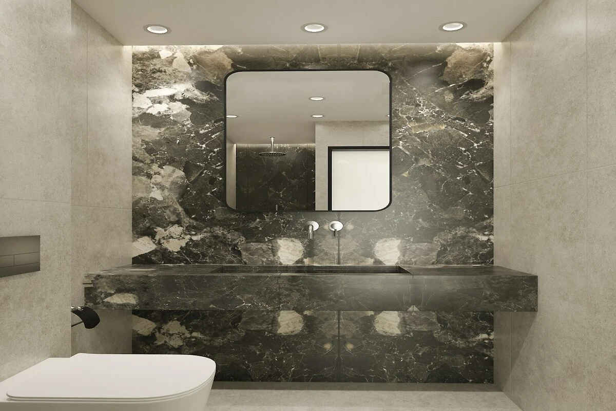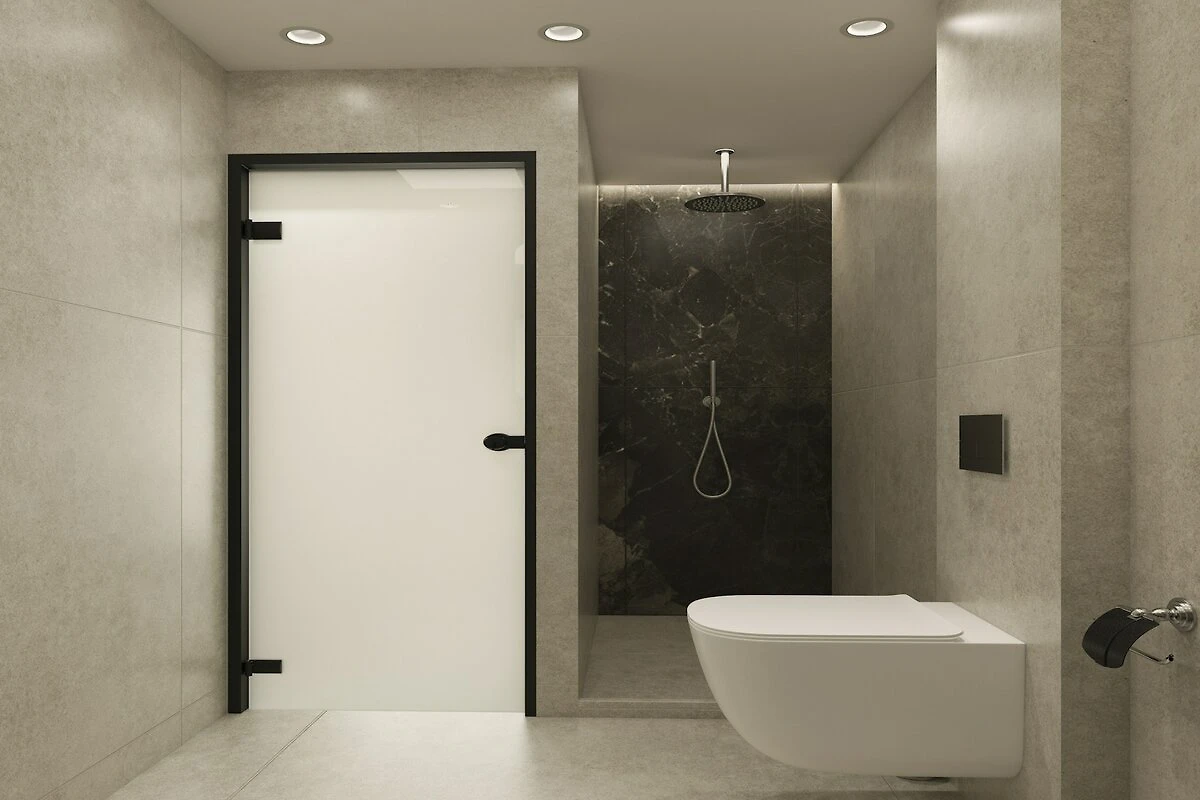 En la 1ª planta: (dormitorio(cama individual, cama individual), dormitorio(cama individual), dormitorio con cuarto de baño(cama doble, ducha, lavabo, váter), dormitorio con cuarto de baño(cama doble, ducha, lavabo, váter), cuarto de baño(ducha, lavabo, váter), cuarto de baño(ducha, lavabo, váter))