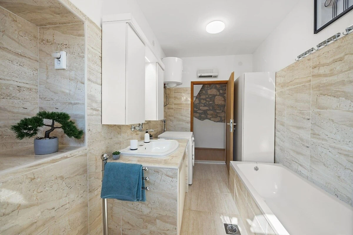 El apartamento se encuentra en Vodnjan, un pequeño pueblo rico en historia y cultura, a unos 10 km de la animada ciudad de Pula. El encanto histórico de Vodnjan se puede explorar paseando por su casco antiguo, donde los estilos arquitectónicos gótico, renacentista y barroco se combinan a la perfección. Entre las atracciones más destacadas se incluyen la Iglesia de San Blas, que ostenta el campanario más alto de Istria, y el museo local, ubicado en un palacio que data del año 1300. Para una experiencia única, los visitantes pueden explorar las momias de Vodnjan, reliquias de santos que siguen siendo una maravilla natural. La zona también es ideal para los amantes del ciclismo, con rutas ciclistas pintorescas como la de 326 Olivos y la de 329 Capillas Antiguas, que ofrecen vistas impresionantes.