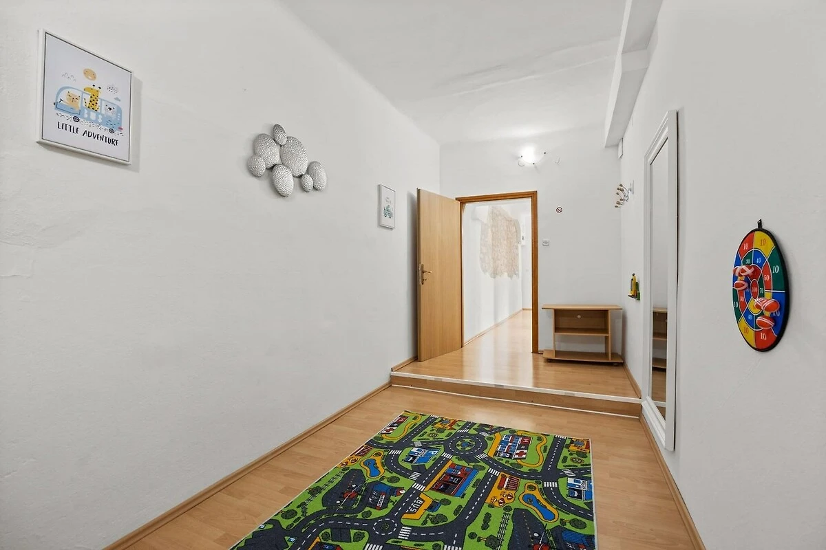 Este encantador apartamento ofrece un remanso de paz a la vez que se encuentra convenientemente cerca del bullicioso centro de la ciudad, a solo 15 minutos en coche. Está diseñado para alojar hasta seis huéspedes, con dos amplios dormitorios con camas king size y un sofá cama doble en el salón. Los huéspedes pueden disfrutar de un ambiente sereno con acceso a un patio privado con una refrescante piscina Intex, un jacuzzi para relajarse, juegos infantiles y una barbacoa de carbón, perfecta para comer al aire libre. El apartamento también ofrece wifi gratuito y aparcamiento privado para dos coches, lo que garantiza una estancia sin estrés.