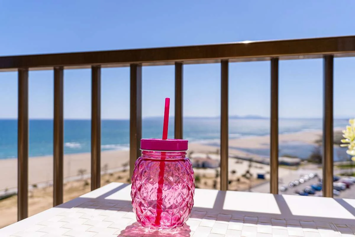 Apartament en Empuriabrava amb 1 dormitori i capacitat per a 5 persones. Allotjament de 50 m² molt lluminós, amb vistes al mar. Es troba a 60 m de la platja de sorra, 150 m del supermercat, 10 km del parc aquàtic, 16 km del camp de golf "Peralada", 20 km de l'estació de trens "Ave/Tgv Figueres", 65 km de l'aeroport "Girona" i està situat en una zona ideal per a families i junt al mar.Disposa de ascensor, terrassa, rentadora, planxa, accés internet (wifi), Televisió, satèl.lit (Idiomes: Castellà, Alemany, Francès).La cuina americana, de gas, està equipada amb nevera, microones, vaixella/coberteria, estris/cuina, cafetera i torradora. Horari d'arribada: pot variar segons la temporada. Contactar amb l'agència per a concretar les hores. Taxa turística i serveis extra opcionals NO inclosos en el preu. Mascota: s'admet 1 sota petició 60€/reserva. Planta: 8º.