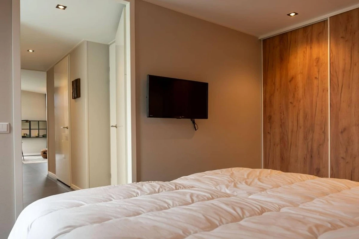 Con dos elegantes dormitorios con camas con somier, la casa puede alojar cómodamente hasta cuatro huéspedes. Un baño con ducha e inodoro, junto con un inodoro adicional separado, garantiza la comodidad para todos. Esta casa de vacaciones, ubicada completamente en la planta baja, es ideal para familias y huéspedes mayores que buscan accesibilidad y comodidad. El diseño moderno de la casa, combinado con su tranquila ubicación junto al bosque, crea un equilibrio perfecto entre lujo y naturaleza.