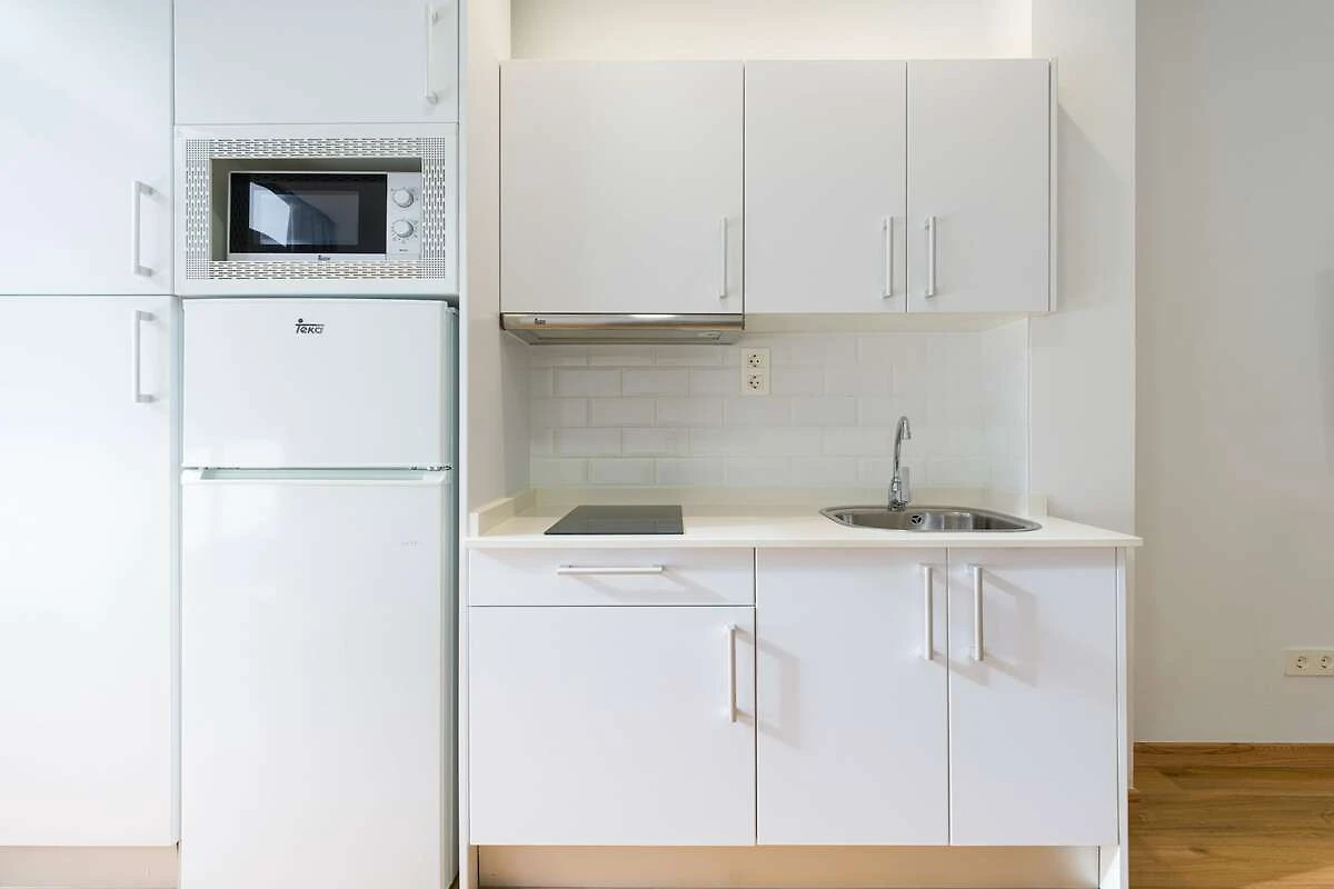 En la 5ª planta: (cocina abierta(tetera, tostadora, cafetera, microondas, nevera, congelador, ), salón-dormitorio(cama individual, cama individual, TV, mesa de comedor, área sofá ), cuarto de baño(ducha))