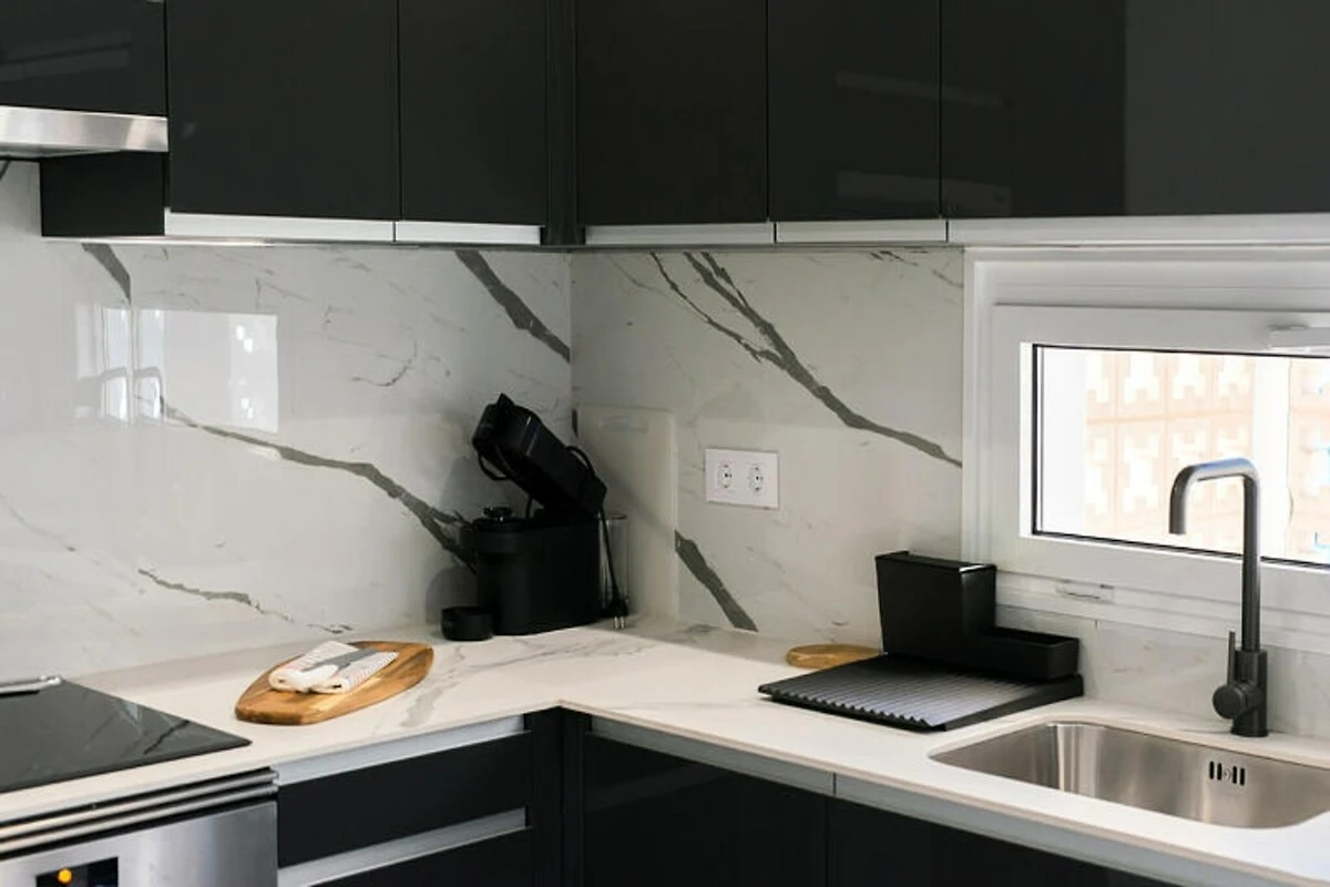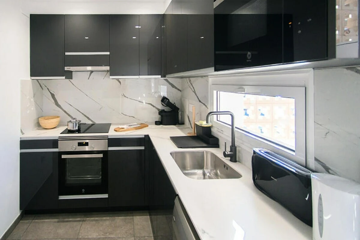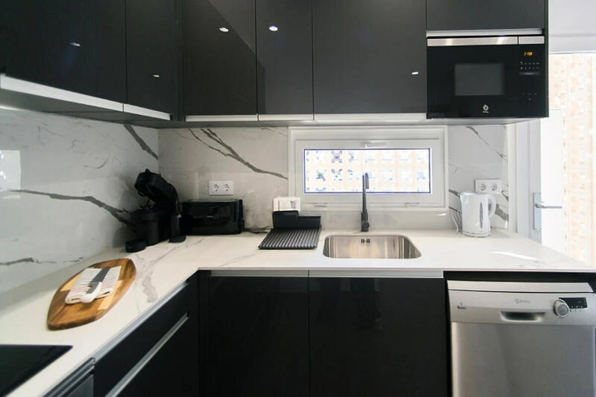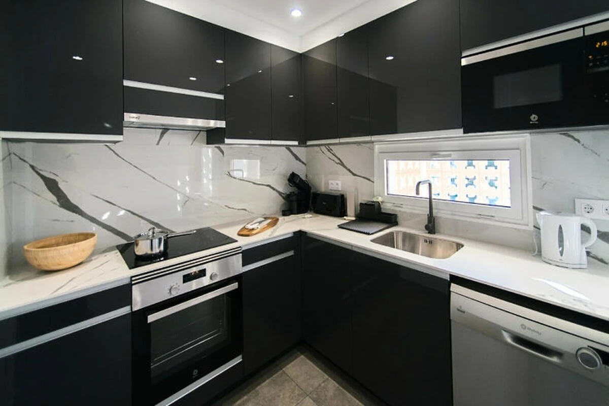Entra y déjate sorprender por una sala de estar luminosa y espaciosa, donde un lujoso sofá doble te invita a relajarte después de un día de turismo. Las dos acogedoras habitaciones, cada una con una cómoda cama doble, prometen noches de descanso, mientras que la suave iluminación y la cálida decoración crean un ambiente tranquilo. La cocina, totalmente equipada con electrodomésticos modernos y todo lo necesario, te permite preparar fácilmente deliciosas comidas para compartir con tus seres queridos.