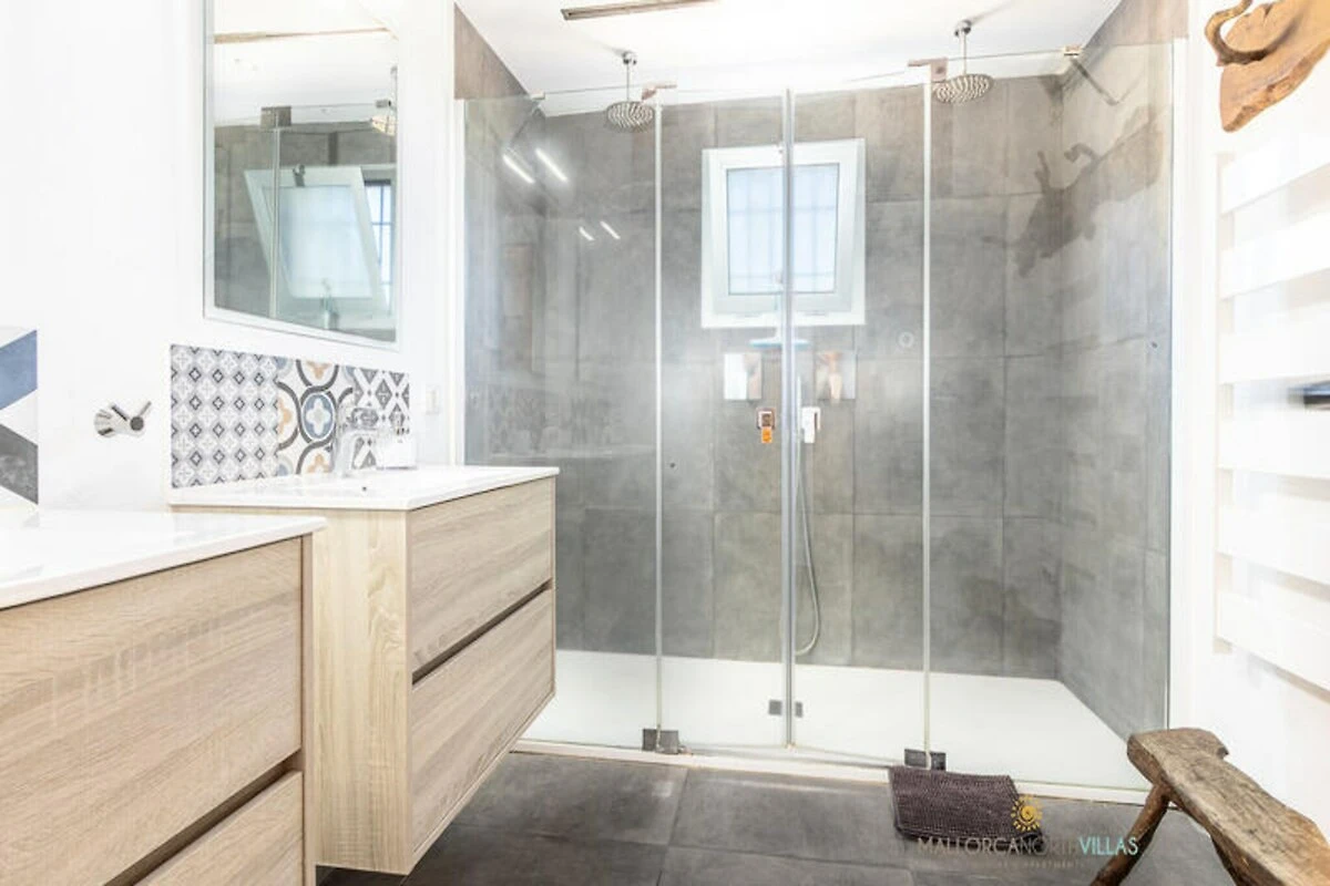 Entre en esta espaciosa villa de 240 m², distribuida en una sola planta, donde la elegancia rústica se fusiona con la comodidad contemporánea. El luminoso salón-comedor, decorado con toques mallorquines, está equipado con aire acondicionado y Smart TV, creando un espacio acogedor para relajarse después de un día de aventuras. La cocina totalmente equipada, con lavavajillas, horno eléctrico y sistema de ósmosis inversa para agua potable, garantiza una estancia perfecta. La villa cuenta con tres cómodas habitaciones, dos de ellas con aire acondicionado y todas con Smart TV, y dos baños, uno de ellos con acceso externo para mayor comodidad.