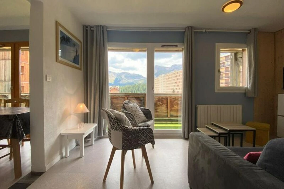 En medio de la serena belleza de Superdévoluy, este encantador apartamento alpino le invita a experimentar la combinación perfecta de comodidad y aventura. A solo 200 metros del centro de la estación y de los remontes, ofrece fácil acceso a las pistas prístinas y a la vibrante vida del pueblo. Tanto si viene para disfrutar de las emociones fuertes en invierno como de las excursiones en verano, esta residencia es su puerta de entrada a recuerdos inolvidables en la montaña. Despierta con el fresco aire alpino y las impresionantes vistas, listo para disfrutar de las aventuras del día. Diseñado para alojar hasta ocho huéspedes, el apartamento cuenta con dos acogedoras habitaciones con camas dobles, una alcoba con sofá cama doble y otra alcoba con literas, ideal para familias o grupos de amigos. La cocina americana totalmente equipada incluye lavavajillas, nevera grande, horno, microondas y electrodomésticos esenciales como cafetera y tostadora, lo que le garantiza preparar comidas abundantes después de un día al aire libre. Dos baños con toalleros y aseos separados añaden comodidad, mientras que la sala de estar con televisión ofrece un acogedor refugio. Se proporcionan edredones y se puede alquilar una funda de edredón para mayor comodidad.\n\nSituado a un corto paseo de tiendas y pistas de esquí, la ubicación es inmejorable. Hay aparcamiento gratuito alrededor de la residencia, con aparcamiento cubierto disponible con reserva previa. Se admiten mascotas por una pequeña tarifa, lo que lo convierte en una opción perfecta para toda la familia. En verano, explore senderos pintorescos, disfrute de picnics en exuberantes prados o simplemente sumérjase en la tranquilidad de las montañas.\n\nTanto si busca emocionantes descensos, tranquilas caminatas o un refugio acogedor, este apartamento en Superdévoluy le ofrece todo lo necesario para una escapada alpina inolvidable. Déjese cautivar por el encanto de los Alpes franceses y cree recuerdos imborrables en este idílico paraíso.