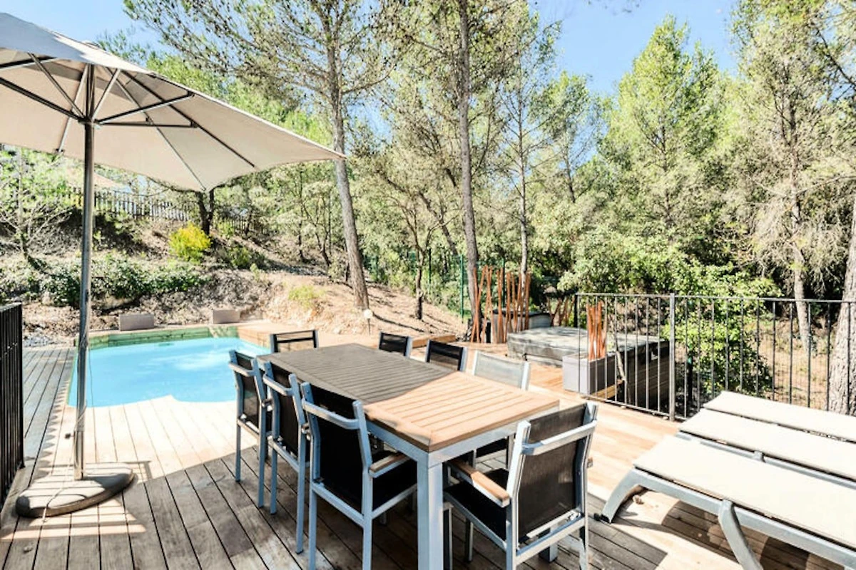 Esta espaciosa villa de cuatro dormitorios (120 m²) forma parte de un complejo de alquiler vacacional en la finca y campo de golf de Pont-Royal en Provenza. La propiedad es ideal para familias o grupos de hasta 8 personas y cuenta con una piscina privada climatizada con corriente de baño, jacuzzi y hammam. Se admiten mascotas (pueden aplicarse tarifas adicionales).