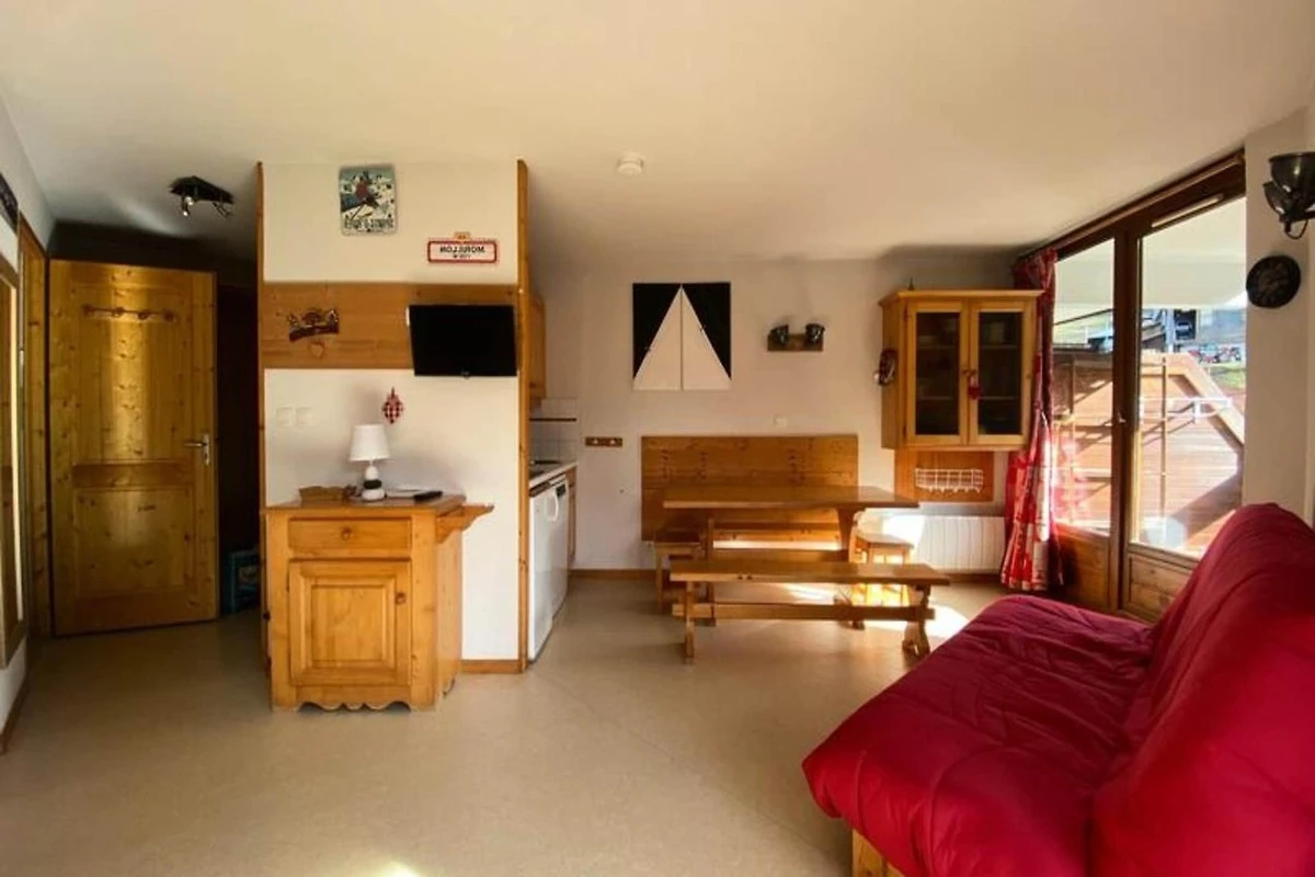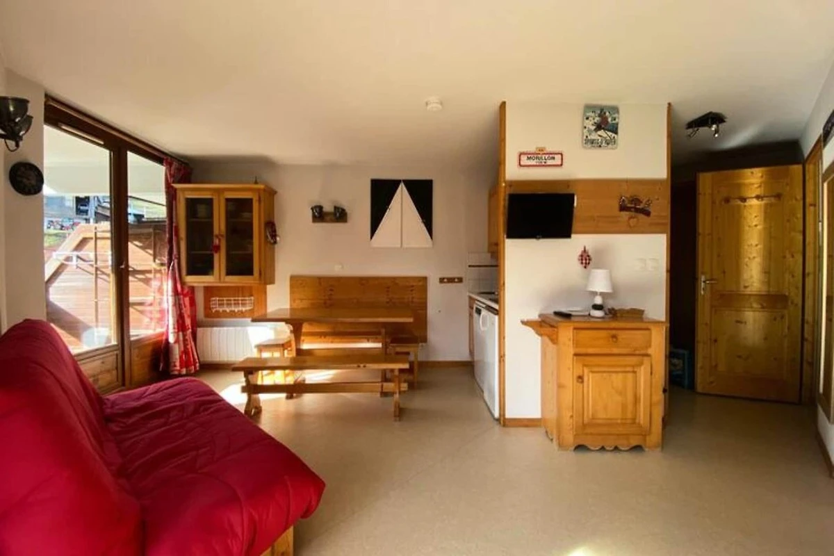 Ubicado al pie de las pistas de esquí en Morillon 1100, este espacioso apartamento de 34 m² es el refugio perfecto para hasta 6 personas. La propiedad está situada en el segundo piso de una residencia con ascensor, ofreciendo fácil acceso. En el interior encontrará una distribución bien diseñada que incluye un rincón de montaña con una litera doble, un acogedor dormitorio con cama doble, una sala de estar con sofá cama y TV. El apartamento es para no fumadores y no admite mascotas, lo que garantiza una estancia tranquila. Se requiere un depósito de 300 € al realizar la reserva.