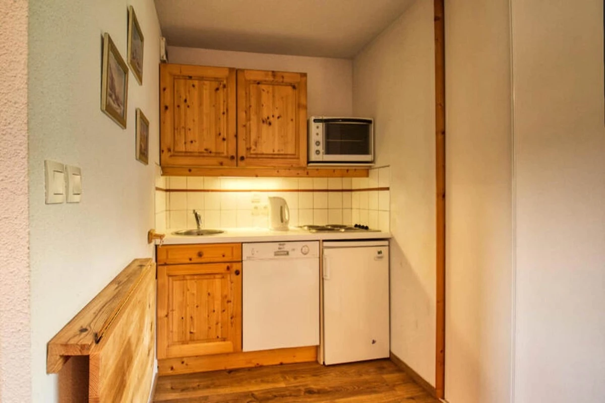 El apartamento cuenta con cocina totalmente equipada con frigorífico, vitrocerámica, lavavajillas, horno, microondas, hervidor eléctrico y cafetera de filtro, además de completo menaje de cocina. En la planta superior hay un cuarto de baño con bañera, WC separado y un cuarto de baño adicional con ducha. Los huéspedes pueden disfrutar de una cena al aire libre en el balcón orientado al este, con muebles de jardín para relajarse después de un día en las pistas.