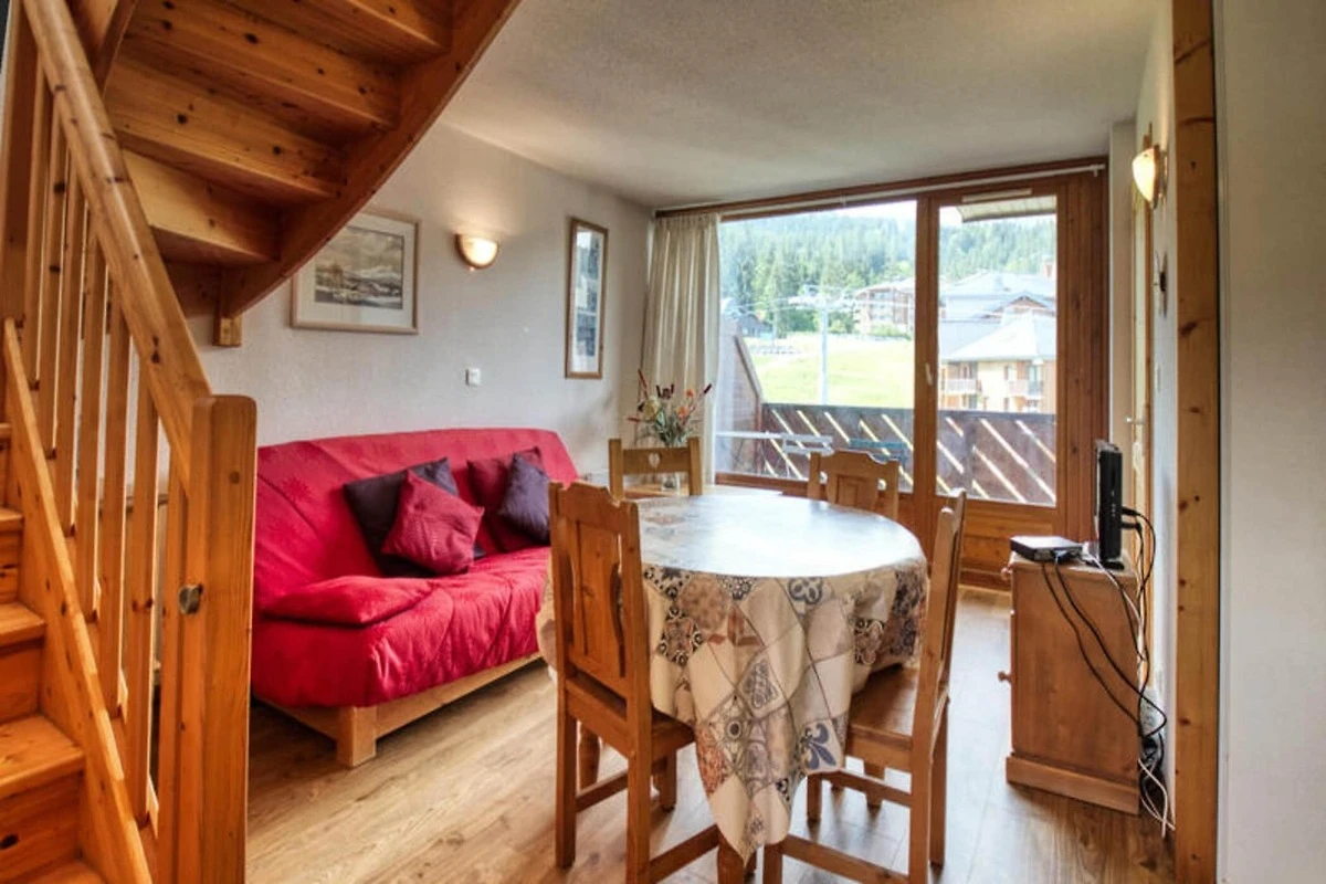 Este acogedor apartamento dúplex, ubicado en el quinto piso de una residencia con ascensor, es perfecto para una estancia en el corazón de la montaña. Diseñado para alojar hasta 6 personas, el apartamento cuenta con un dormitorio con cama nido, un sofá cama en el salón y un segundo dormitorio en la planta superior con una cama doble. Se proporciona ropa de cama completa, incluidos cubrecolchones, edredones y almohadas. La propiedad admite mascotas, permitiéndose un animal por un suplemento adicional, siempre que no se quede solo en el apartamento. Hay un guardaesquís disponible en la planta baja y una plaza de aparcamiento privado se encuentra frente a la residencia.