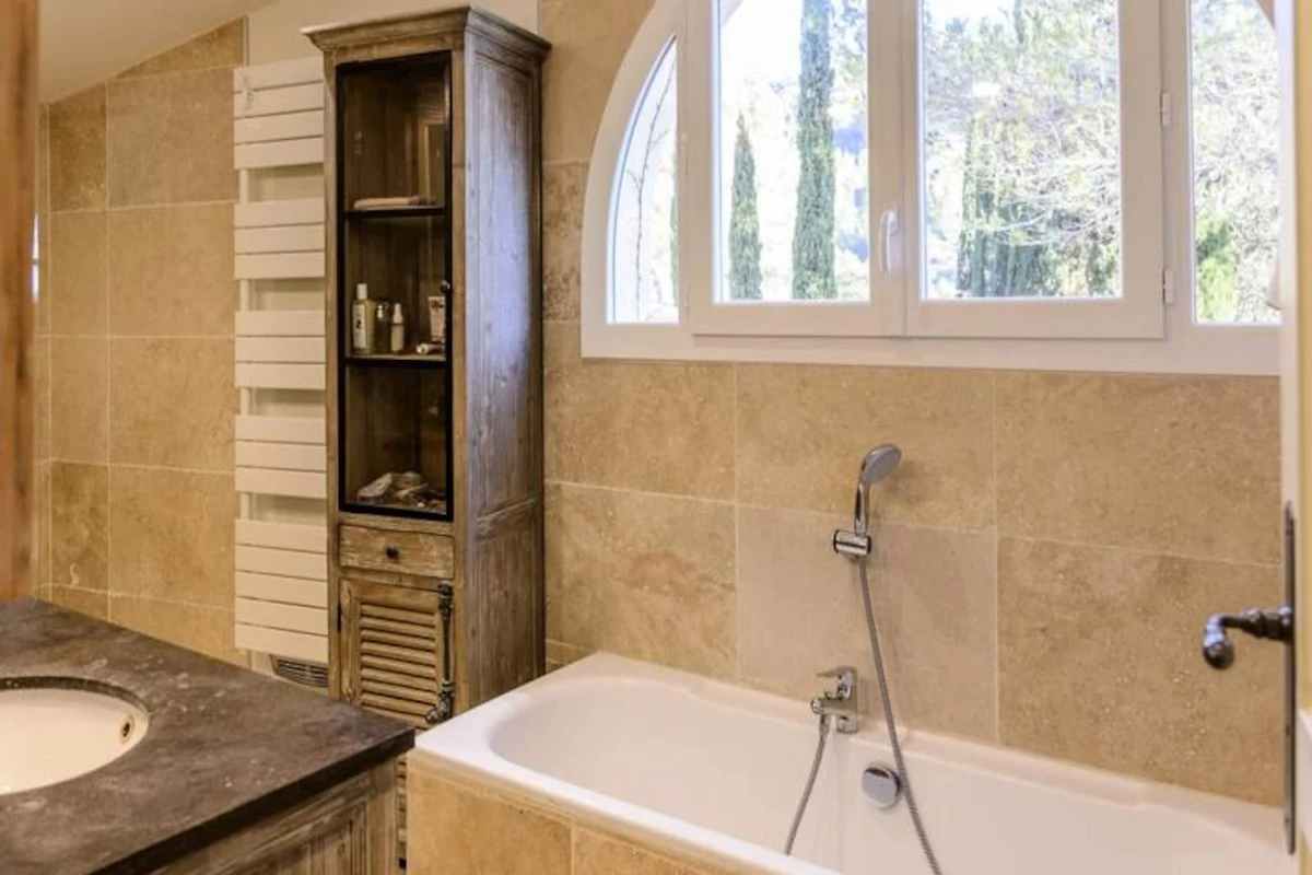 Le Ventoux dispone di 6 camere da letto con ventilatori e 6 bagni, perfette per famiglie e gruppi di amici. La camera da letto principale dispone di un bagno con vasca, mentre le altre camere sono dotate di bagno con WC.