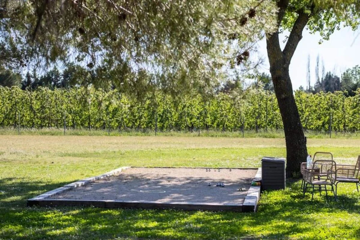 Ubicada en una tranquila zona rural, la propiedad cuenta con impresionantes vistas a los viסedos y estב a poca distancia en coche de las atracciones imprescindibles de Provenza. Isle-sur-la-Sorgue, con sus vibrantes mercados provenzales y tiendas de antig�edades, estב a sףlo unos minutos, mientras que Fontaine-de-Vaucluse y los encantadores pueblos de Luberon, situados en lo alto de una colina, estבn a 15 minutos. La regiףn de Alpilles y las playas de la Costa Azul son fבcilmente accesibles. En las inmediaciones se pueden realizar actividades como pirag�ismo, catas de vino, senderismo y explorar el Colorado provenzal.