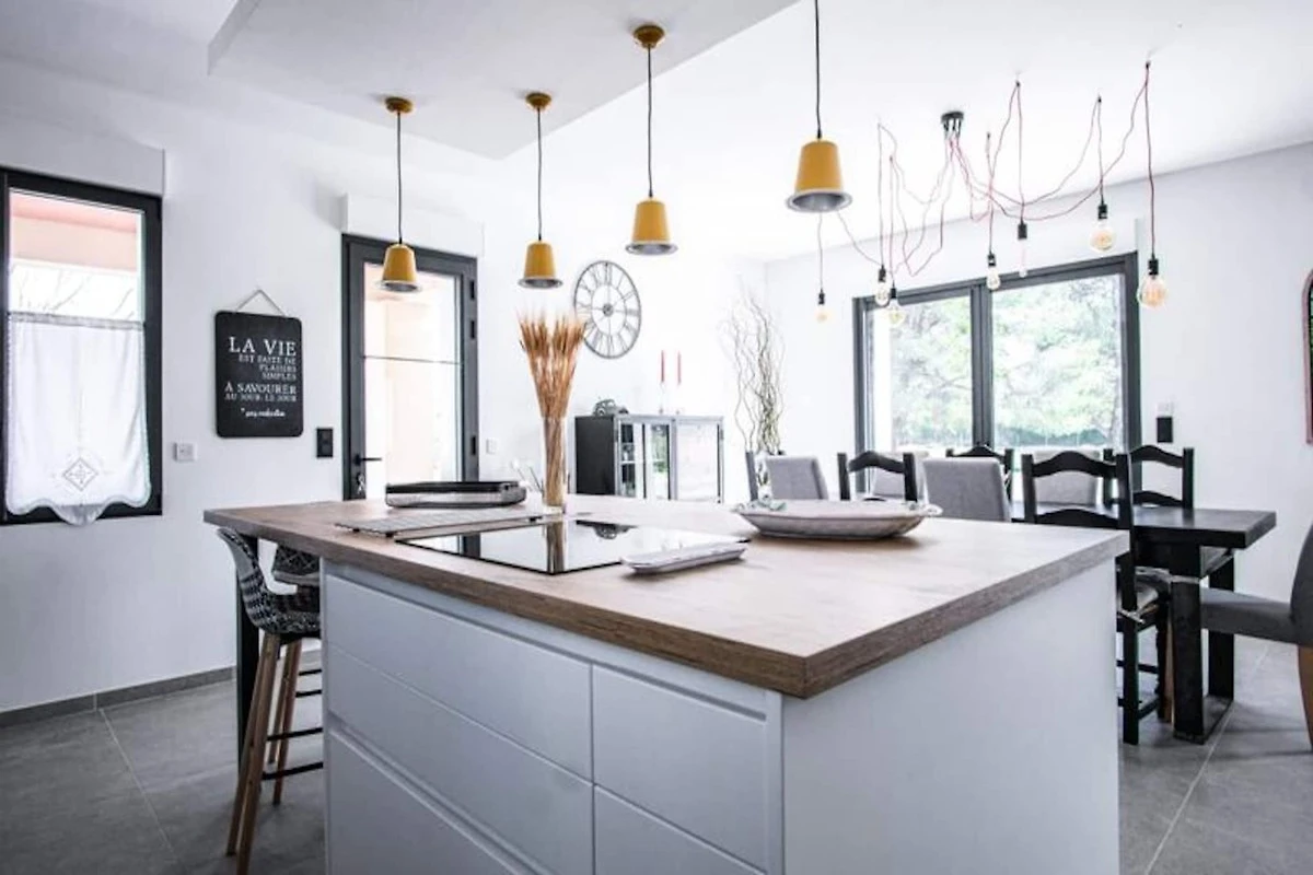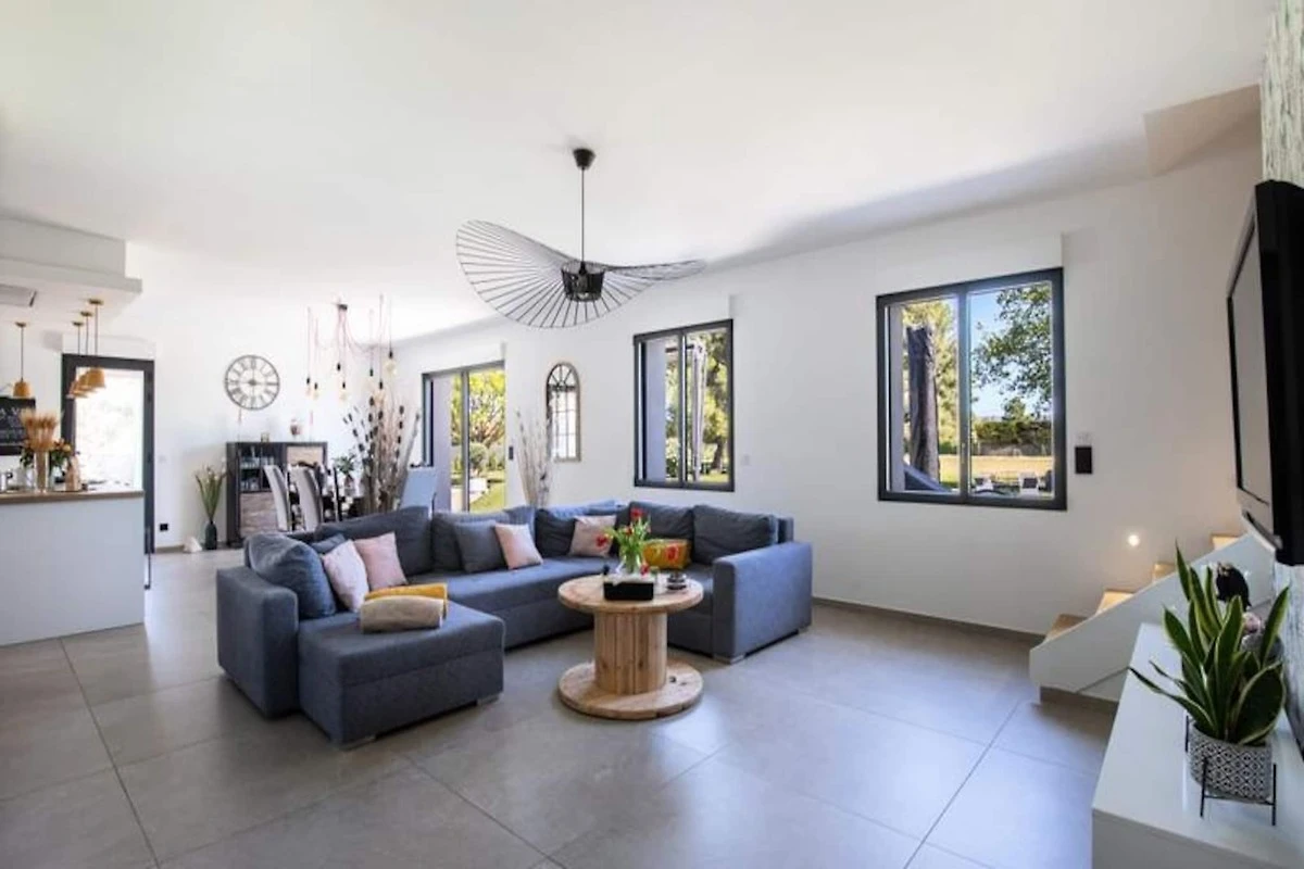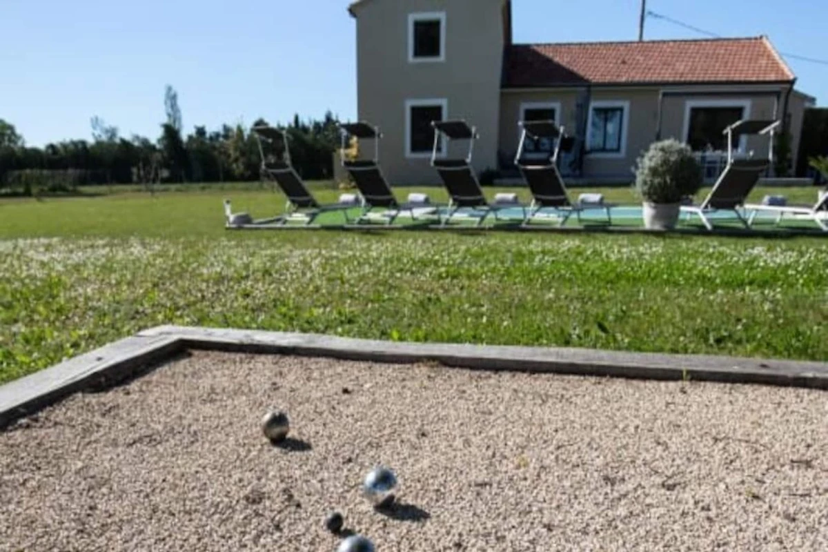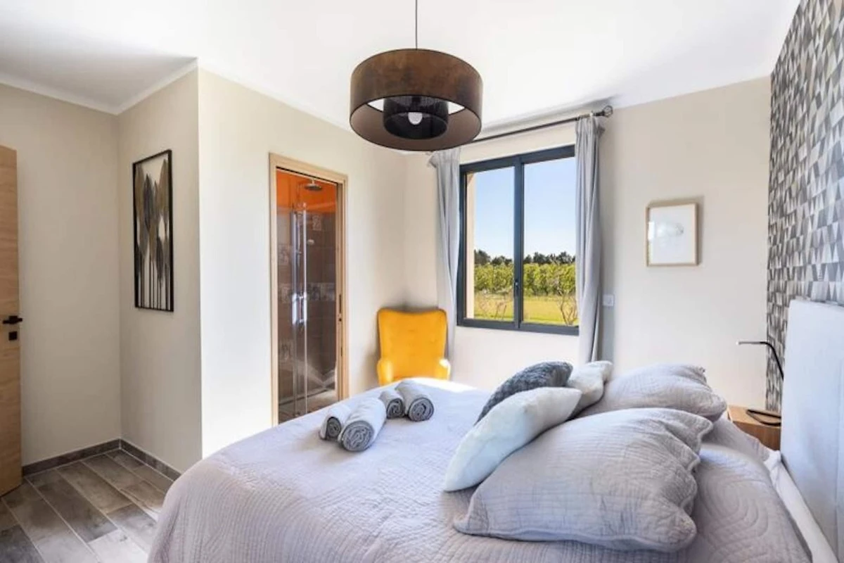 Esta casa de vacaciones contemporבnea renovada ofrece una estancia relajante en Provenza, perfecta para hasta ocho huיspedes. La propiedad de 150 m² incluye cuatro dormitorios y tres baסos, con dos dormitorios y dos baסos convenientemente ubicados en la planta baja para mayor accesibilidad. Una cocina totalmente equipada y una amplia sala de estar/comedor lo hacen ideal para estancias familiares o grupales. La casa cuenta con piscina privada, barbacoa, tumbonas, mesa de ping-pong y bolera, lo que garantiza mucha diversiףn al aire libre. Se admiten mascotas pequeסas.