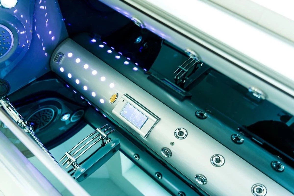 El amplio y luminoso salón con terraza está amueblado con un estilo moderno, y la calefacción por suelo radiante y la chimenea crean un ambiente acogedor. Un televisor inteligente LED curvo de 40 pulgadas y un moderno sistema de sonido proporcionan entretenimiento. La cocina está equipada con electrodomésticos integrados, una zona de comedor y una cafetera automática.