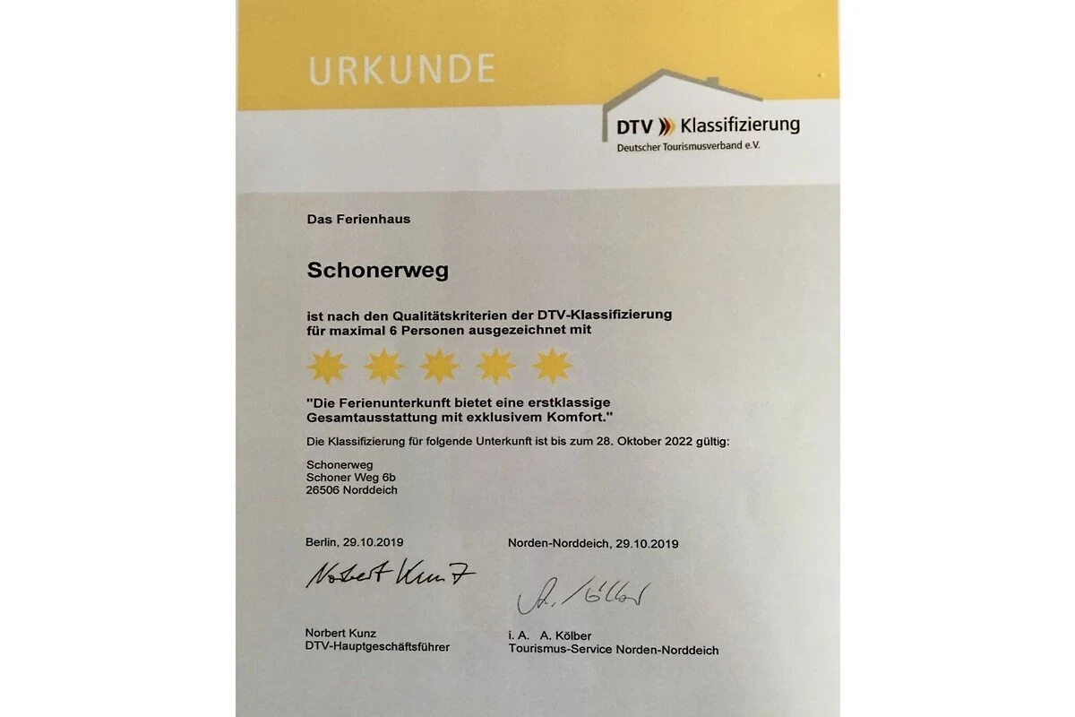 La casa de vacaciones Schonerweg está amueblada y equipada con estándares de 5 estrellas. Dispone de tres dormitorios: dos con camas dobles y uno con camas individuales, todos equipados con TV y reproductor de DVD. Hay dos baños: uno con bañera de hidromasaje y sauna de vapor, y el otro con ducha.