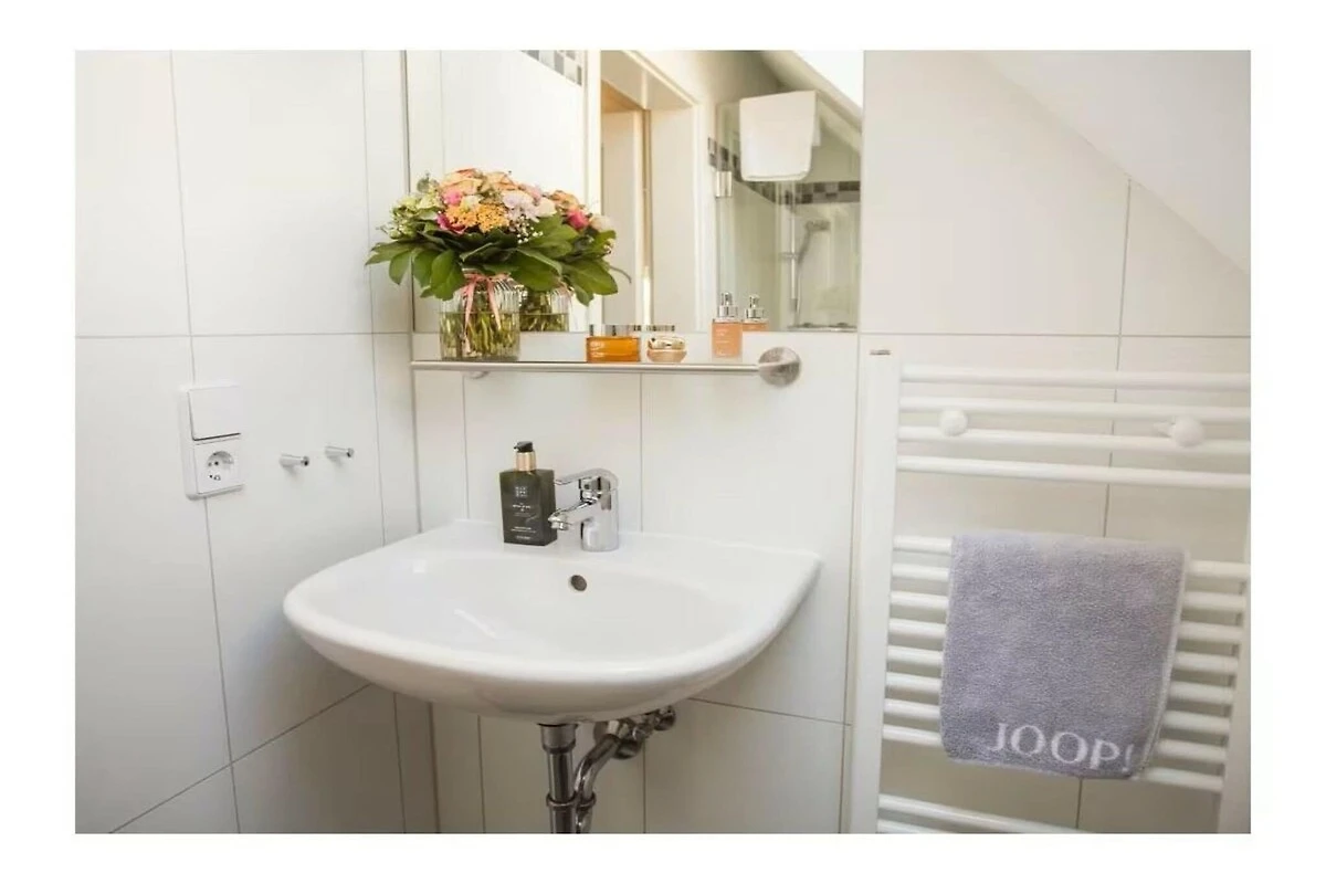 Planta superior: un dormitorio con cama doble, un dormitorio con dos camas individuales, baño con ducha, aseo y galería con un cómodo sofá. Cuna de viaje, trona y reposapiés disponibles gratuitamente para los más pequeños. Las mosquiteras en las ventanas protegen de los insectos. Wi-Fi gratuito. El apartamento incluye una plaza de aparcamiento gratuita. Puede guardar sus bicicletas en el cobertizo para bicicletas del edificio.