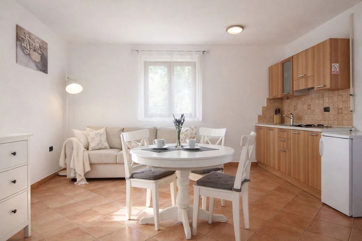 Apartamento de vacaciones muy bonito con terraza y barbacoa en el jardín. El propietario es muy amable y servicial. Ubicación tranquila pero céntrica en Valbandon. El apartamento estaba equipado con todo lo necesario, solo la cama podría ser renovada. Pero por lo demás, todo perfecto, volveríamos, nos gustó mucho.