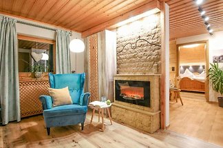 Chalet de lujo, wifi, TV, WC, cabina de infrarrojos, bañera exenta, WC y ducha, cocina completa, lavavajillas, cafetera, microondas, horno, frigorífico - un sueño para dos.